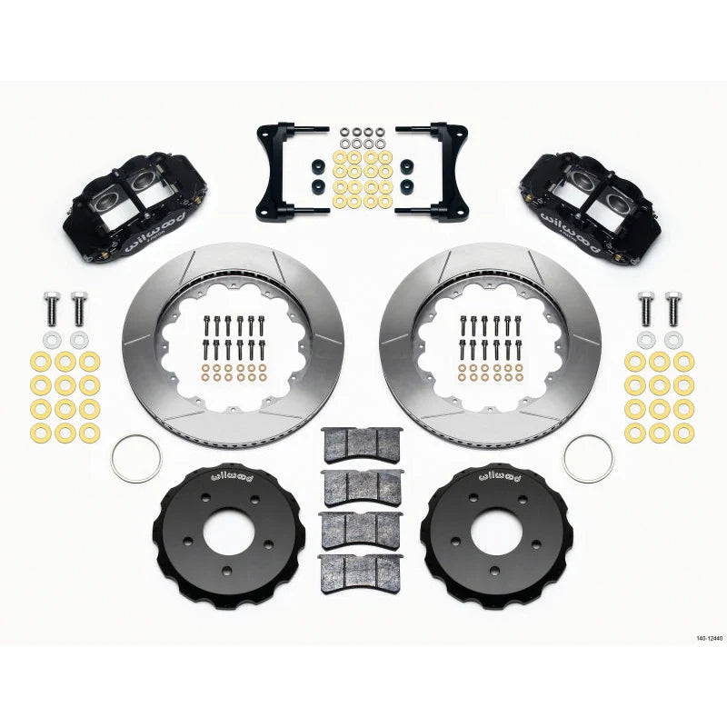 140-12440 Wilwood 07-18 Jeep Wrangler Superlite 6R Front Big Brake Kit Slotted Rotors. Upgrade your Jeep Wrangler JK with Wilwood’s Superlite 6R Front Big Brake Kit featuring forged 4-piston black powder-coated calipers and slotted 14-inch rotors. Designed for direct bolt-on installation, this kit enhances stopping power, reduces brake fade, and improves pedal feel while maintaining ABS and master cylinder compatibility. Ideal for upgraded wheels and suspension, it delivers reliable, consistent braking performance with a sleek, aggressive look for both street and off-road driving.