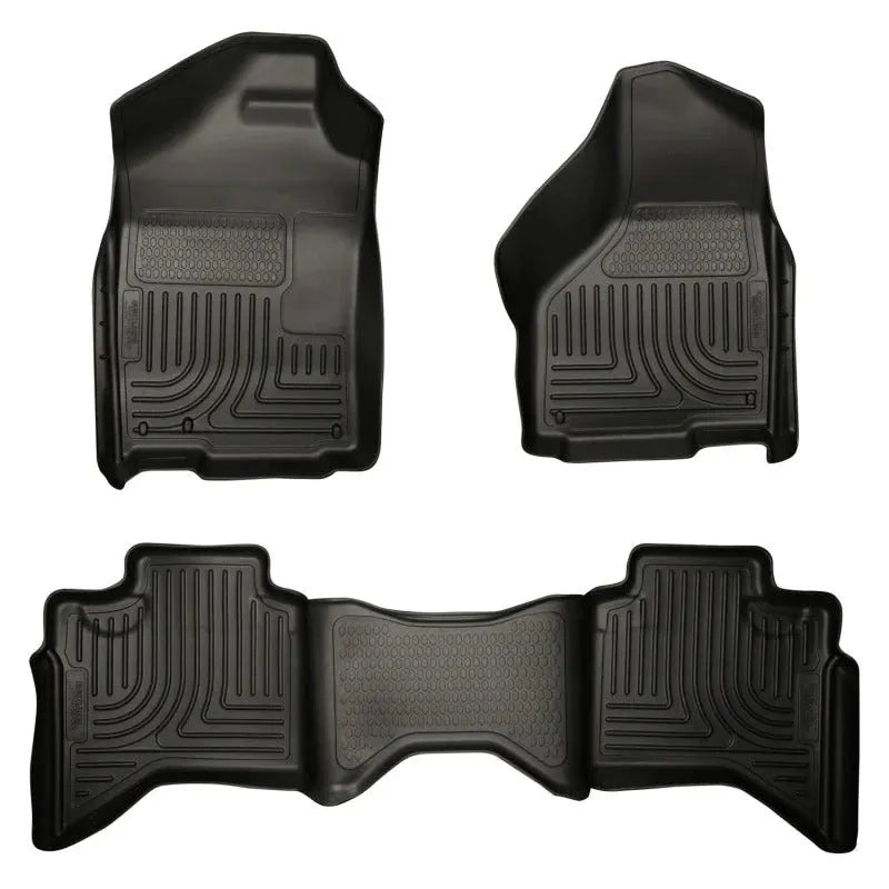 99011 Husky Liners Dodge Ram 1500 (2009-2010) / Ram 1500 (2011-2018) / Ram 1500 Classic (2019-2024) Black WeatherBeater Front and Second Seat Floor Liner. Husky Liners Black WeatherBeater Front and Second Seat Floor Liner offers durable, all-weather protection for Dodge Ram 1500 (2009-2010), Ram 1500 (2011-2018), and Ram 1500 Classic (2019-2024). Its custom laser-scanned FormFit Design ensures a precise fit, while StayPut cleats prevent shifting. Resistant to chemicals like gas and oil, this liner features a raised FormFit Edge to contain spills and keep carpets clean. Rugged and flexible, it withstands extreme temperatures, providing reliable floor protection for your truck’s front and rear seating areas.