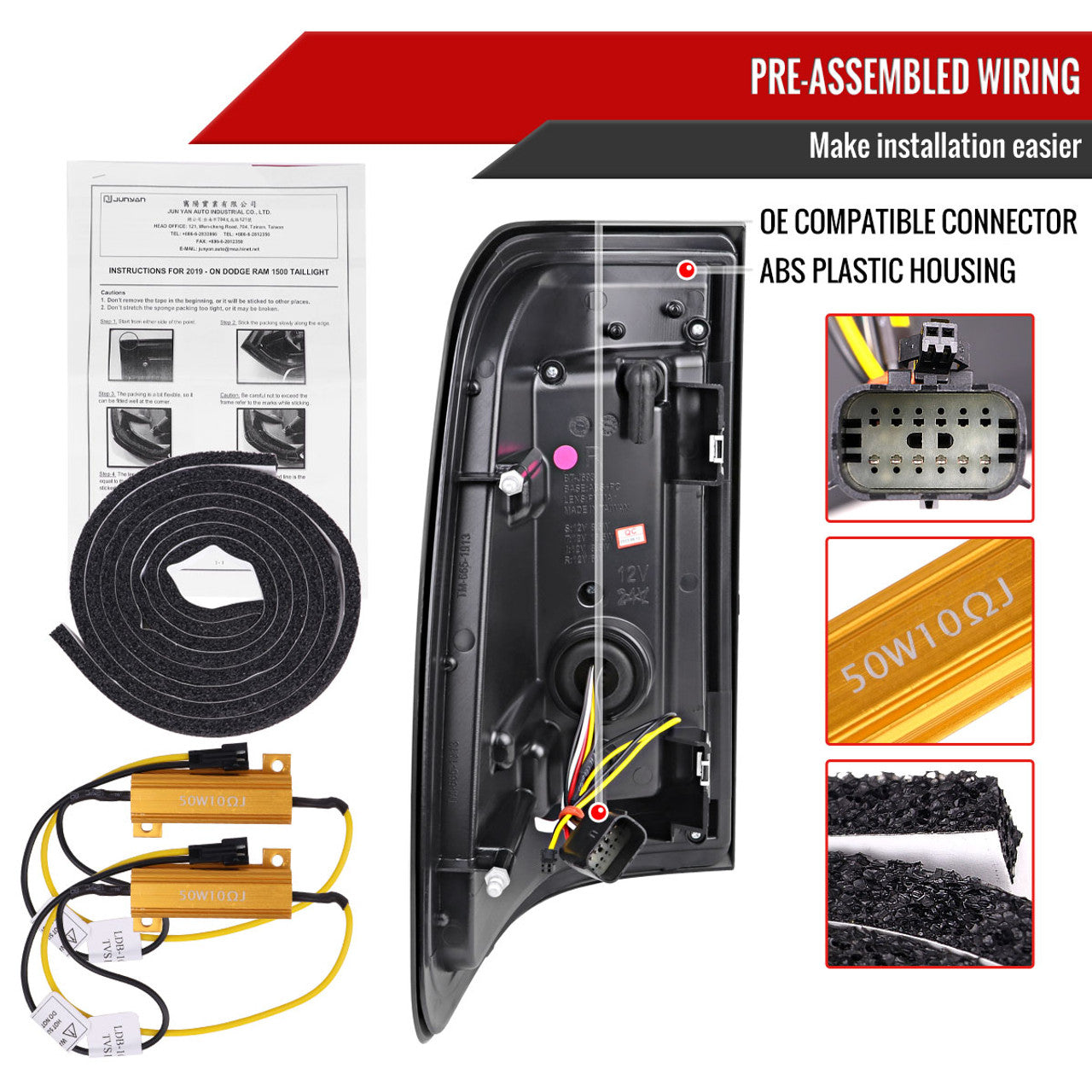 - Compatible only with 2019–2024 Ram 1500 new body style models equipped with factory halogen tail lights