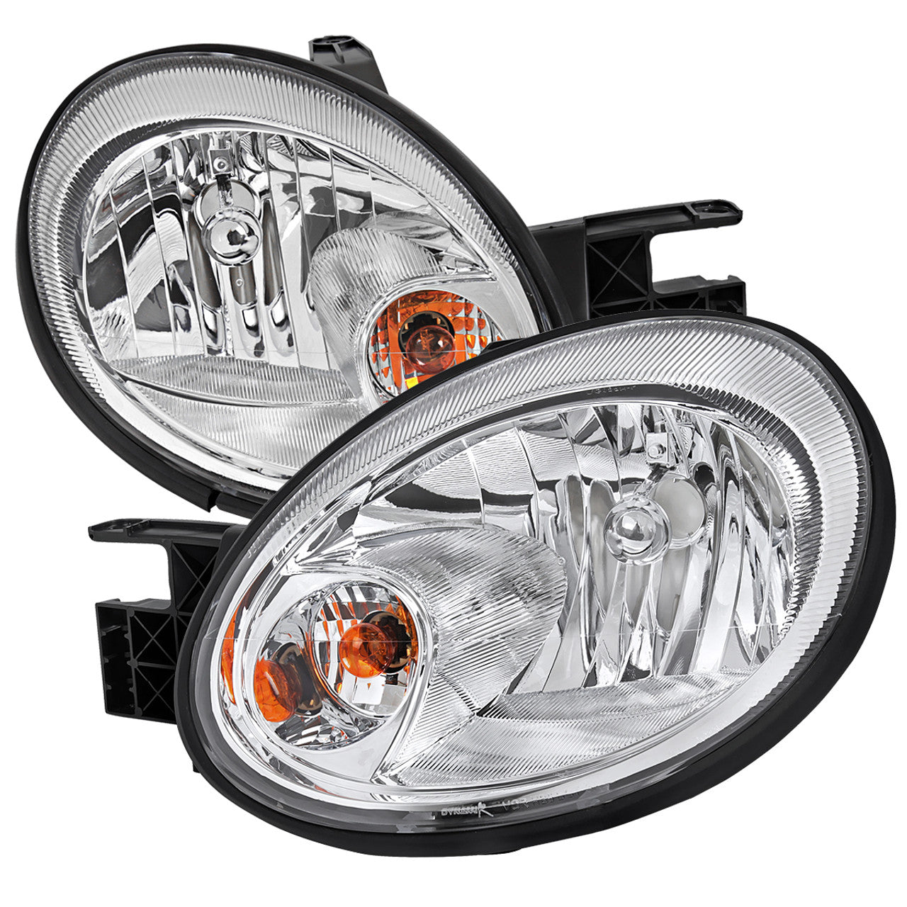 2LH-NEO03-ABM Spec D 03-05 Dodge Neon OEM Style Headlights (Chrome). Upgrade your 2003-2005 Dodge Neon with these factory-style chrome housing headlights featuring clear lenses. Made by an OEM-approved and ISO-certified manufacturer, they meet strict quality standards for durability and fit. Includes 3157 turn signal bulbs; 9007 high/low beam bulbs must be reused from stock. These headlights offer a sleek, factory look while enhancing nighttime visibility. Professional installation is recommended for optimal results.