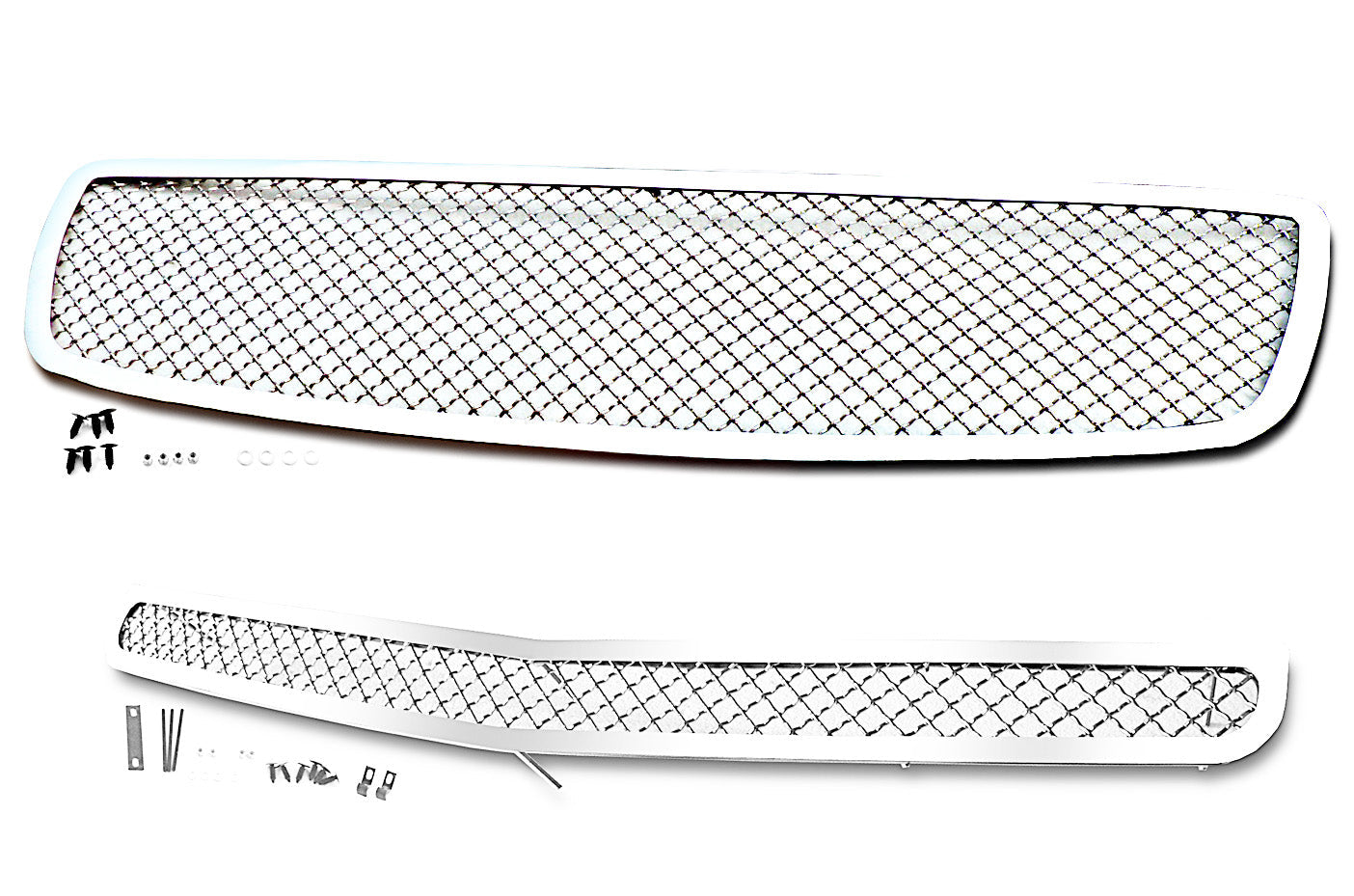 GR04GGH89S APS 06-10 Dodge Charger Polished Stainless Mesh Grilles (Upper & Lower). Upgrade your Dodge Charger’s front end with these polished stainless steel mesh grilles, designed to add a rugged and aggressive look. Crafted from high-quality stainless steel, they offer excellent durability and corrosion resistance. The 2.5mm wire mesh improves engine airflow, enhancing performance and fuel efficiency, while protecting your radiator from debris. Complete with all necessary mounting hardware and installation instructions, these grilles provide a seamless replacement with a bold style upgrade. (Does NOT fit SRT8 models)