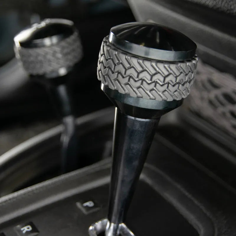The DV8 Offroad shift knob is meticulously crafted from billet aluminum, a material known for its excellent strength-to-weight ratio and resistance to wear. The knob’s signature "Tired Tread" grip pattern is not only visually striking but also functional, providing a textured surface that enhances grip security even in wet or muddy conditions. This design reduces hand fatigue during extended drives and offroad excursions.