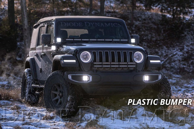 DD7058 Diode Dynamics 07-26 Jeep Wrangler / Gladiator SS3 Max LED Fog Light Kit Amber Backlit Yellow. Upgrade your fog lights with this high-output LED kit featuring advanced TIR optics for focused, SAE-compliant illumination. The durable powder-coated aluminum housing and round bezel provide a factory-style look with modern amber backlighting for enhanced visibility and style. Plug-and-play installation requires no modifications, fitting perfectly on Jeep Wrangler JK, JL, and Gladiator JT models with 10th Anniversary Metal Bumper. Engineered and assembled in the USA for reliable performance and road-legal use.