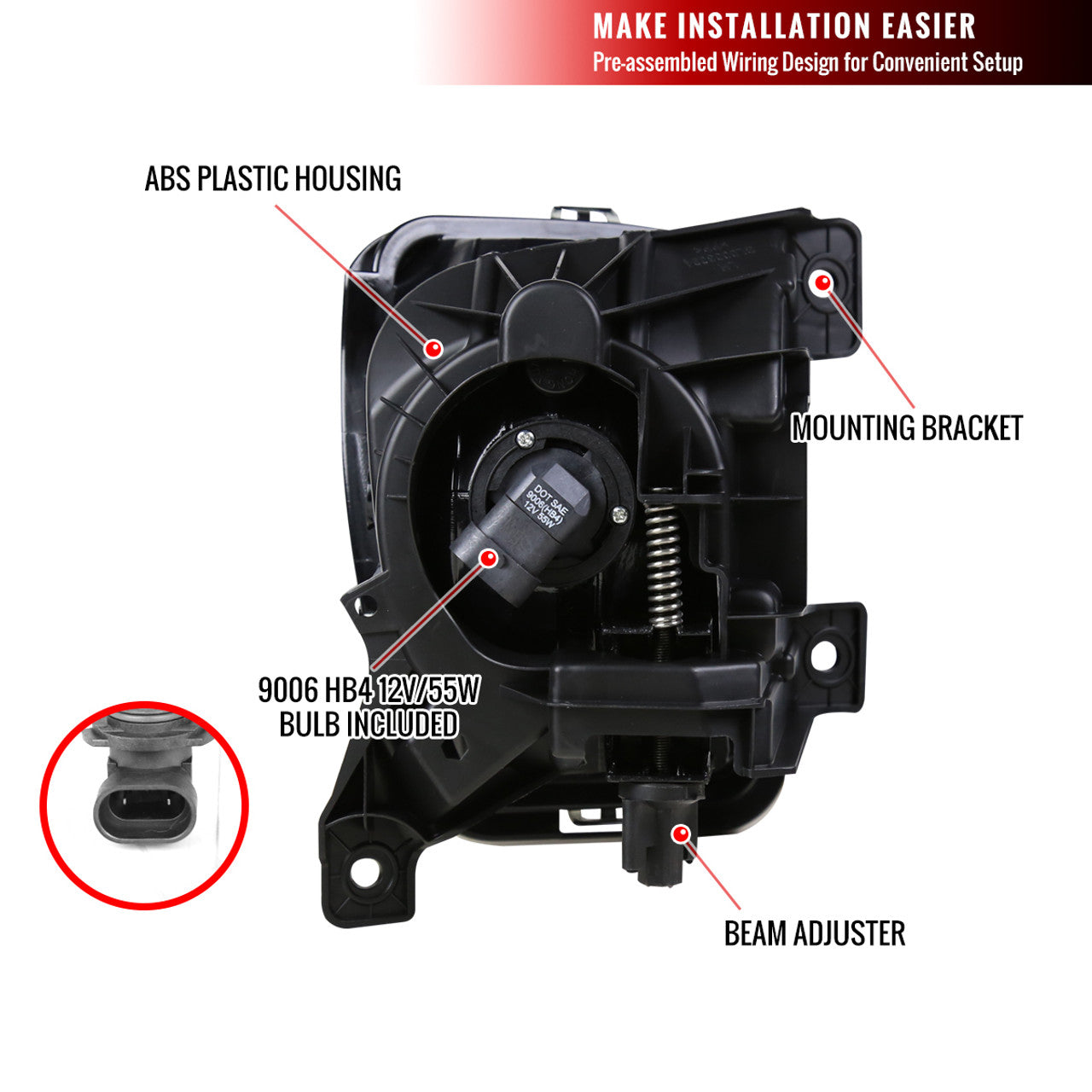 LF-RAM1315GOEM-HZ Spec D 13-18 Ram 1500 Fog Lights w/ Switch (Smoke). Upgrade your Ram 1500 with these high-quality fog lights featuring smoke lenses and chrome housings. Designed for enhanced visibility in fog, rain, snow, and nighttime driving, they include 9006 bulbs, relay, wiring harness, screws, and an on/off switch for easy installation. Manufactured to meet strict OEM standards by an ISO certified company, these fog lights offer durability and reliable performance. Perfect for 2013-2018 Ram 1500 models (excluding Rebel). Professional installation is recommended for optimal results.