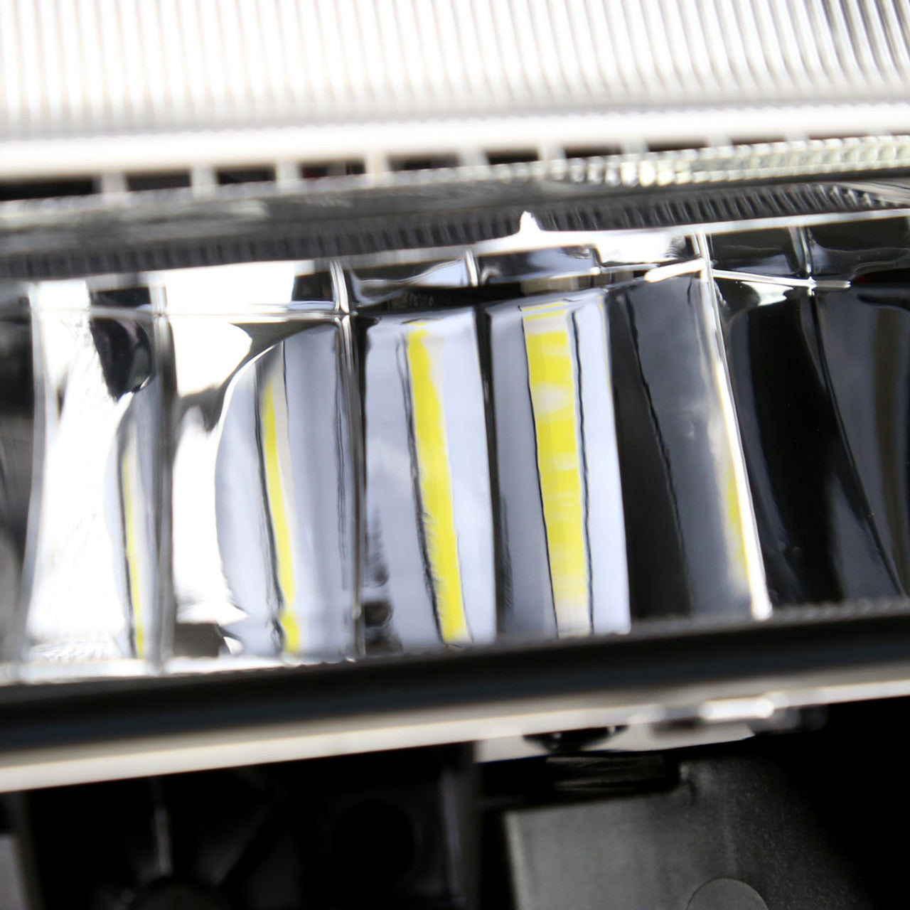 - Clear lens design paired with a glossy black housing for a modern, aggressive look