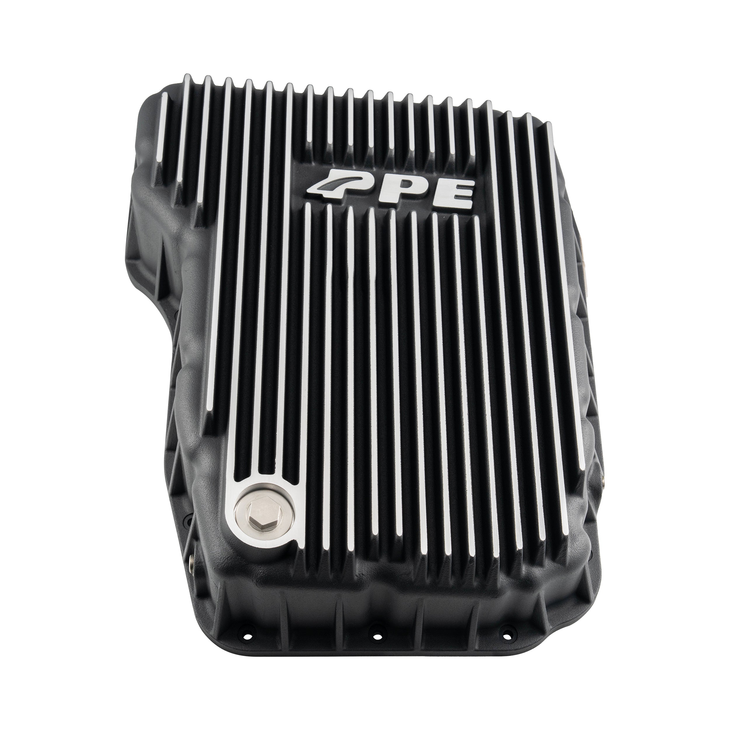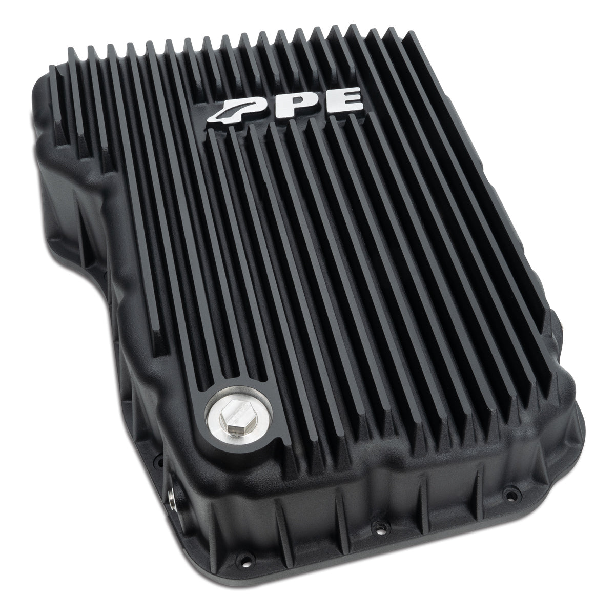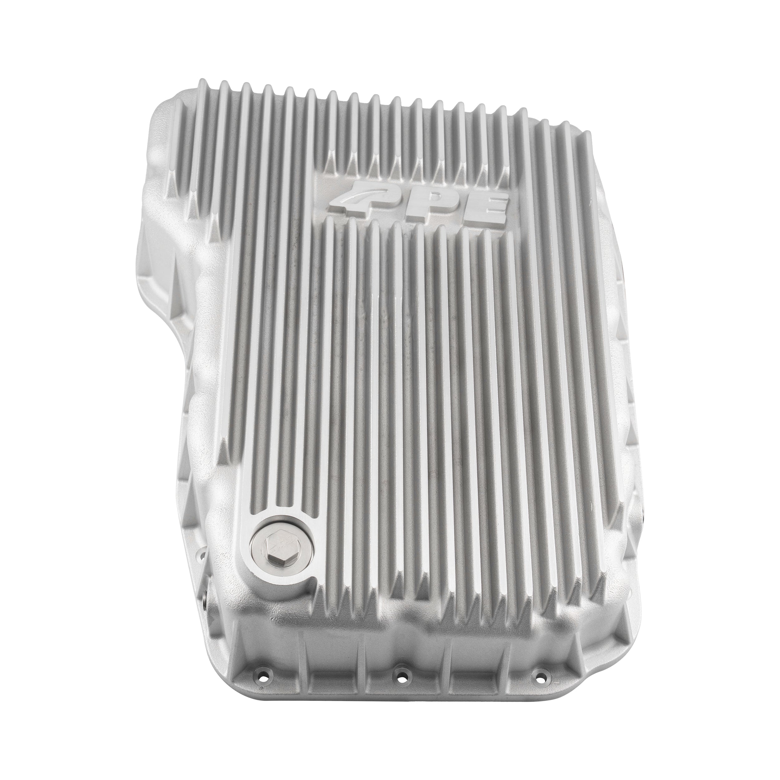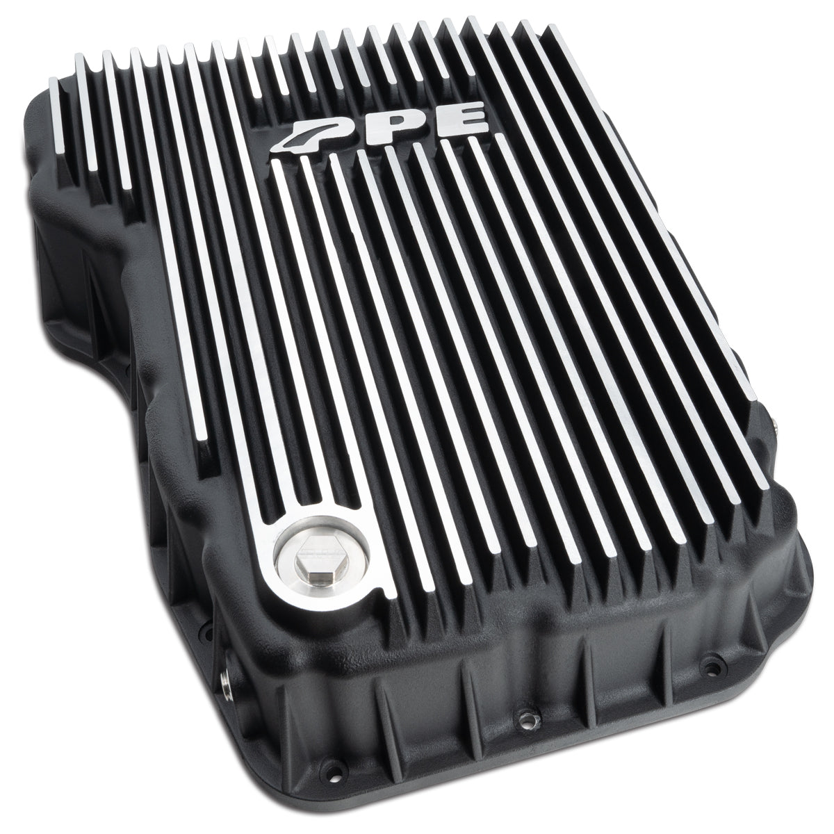 228052100 PPE Dodge Ram (07-24) 6.7L Cummins 68RFE Heavy-Duty Cast Aluminum Transmission Pan. The PPE Heavy-Duty Cast Aluminum Transmission Pan enhances cooling and durability for Dodge Ram 2007-2024 6.7L Cummins 68RFE transmissions. Its deep cooling fins and built-in baffles increase fluid capacity and heat dissipation, protecting your transmission from excessive heat and wear. Crafted from high-grade aluminum alloy, it also features a neodymium magnet drain plug to capture metal particles, ensuring longer transmission life and reliable performance under heavy loads.