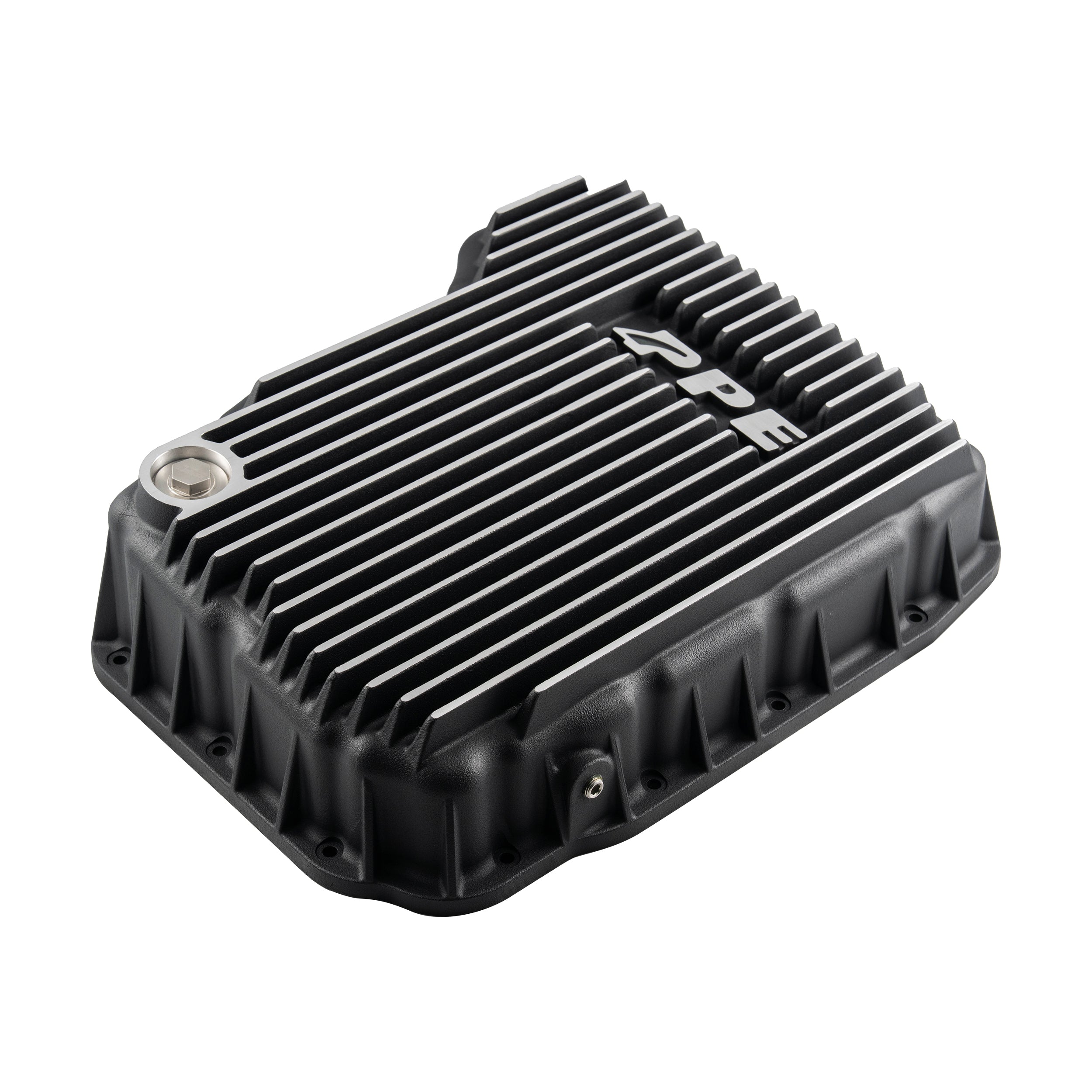 - Heavy-duty cast aluminum transmission pan with cooling fins and internal baffles