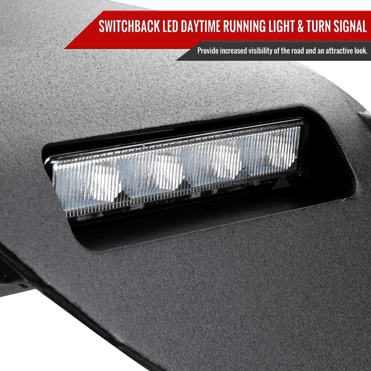 - Comes with (1) pair of matte black flat fender flares (1 x Driver and 1 x Passenger) with switchback LED signal lights
