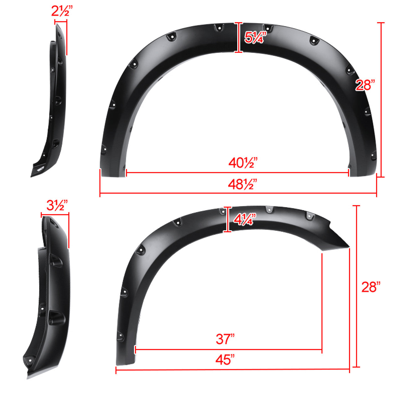 - Comes with 1 set of 4 pieces fender flare (2 for front and 2 for rear)