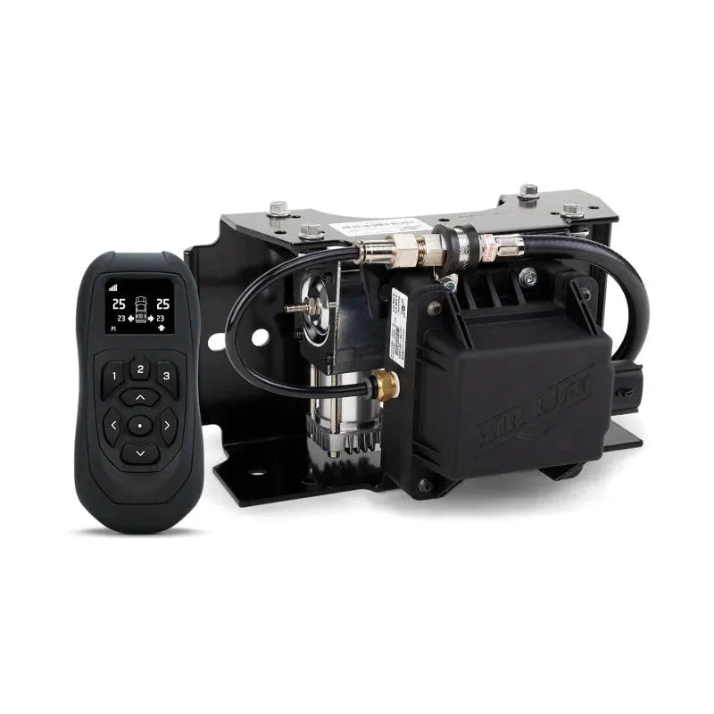 The Air Lift Wireless Air Control System V2 with EZ Mount is a cutting-edge on-board air compressor system designed for precise, effortless air pressure adjustment of any brand of aftermarket air springs. Perfect for enthusiasts and professionals alike, this system offers individual control of each air spring, allowing for tailored inflation or deflation to accommodate uneven or top-heavy loads. The second-generation WirelessAir system enhances user experience with a wireless handheld controller featuring an LCD display and a mobile app for iOS and Android devices, enabling control from anywhere at any time.