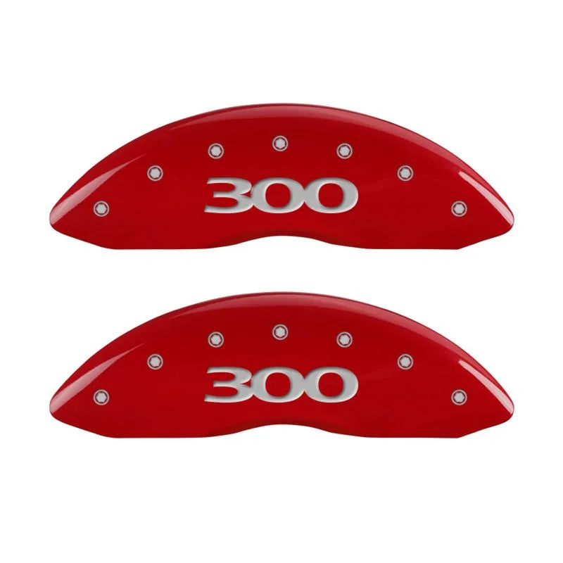 MGP Caliper Covers (FRONT AND REAR): Chrysler 300 (2011-2023) w/ Red Finish, Silver Characters, 300 Logo