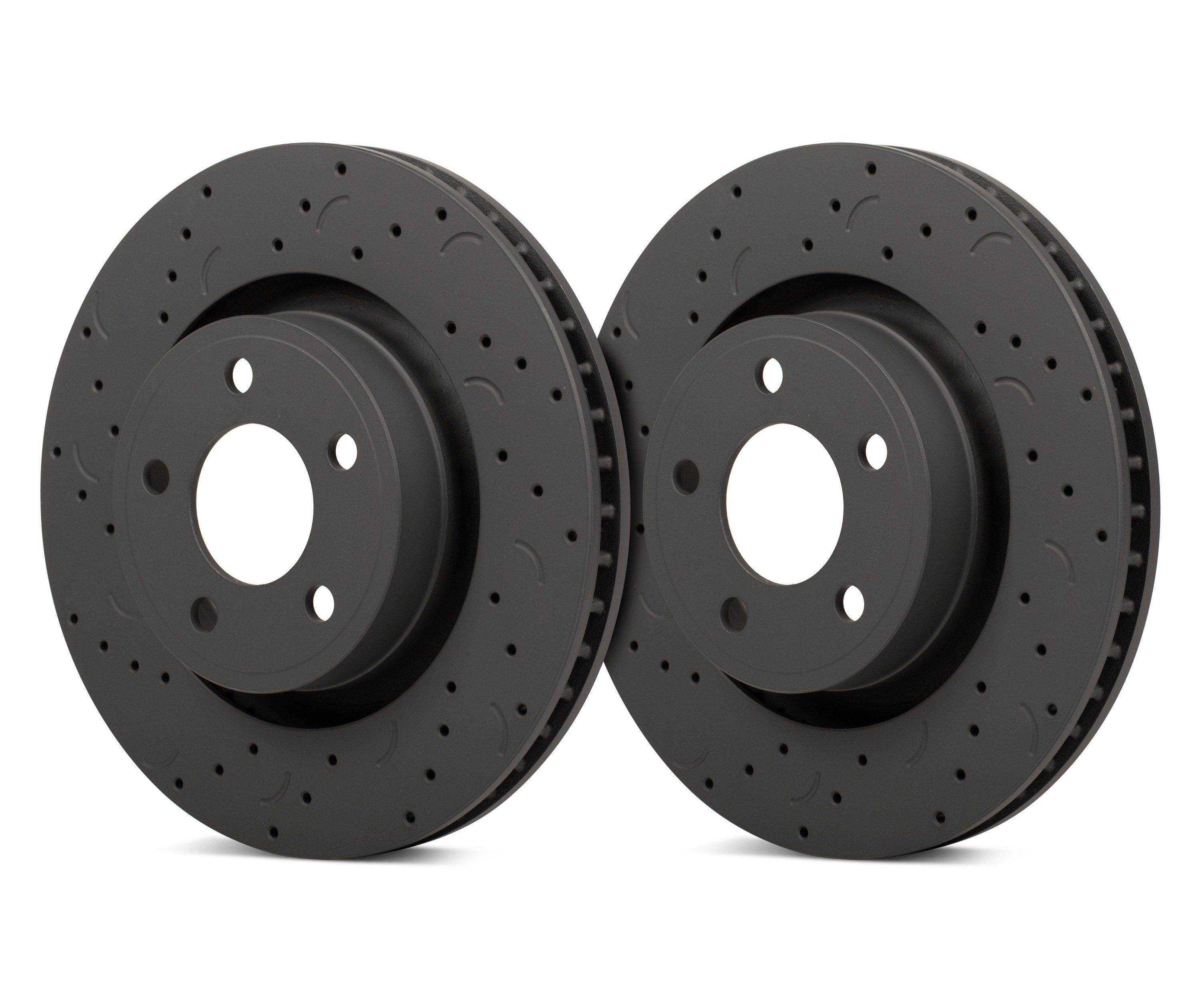 - Two front drilled and slotted brake rotors (driver and passenger side)