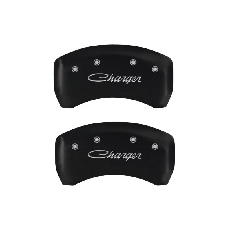 The engraved silver cursive “Charger” logo adds a refined, factory-inspired touch that enhances the visual appeal without overpowering the design. Each cover is precision-machined to fit perfectly over the factory brake calipers, maintaining proper clearance to avoid interference with brake operation or wheel fitment.