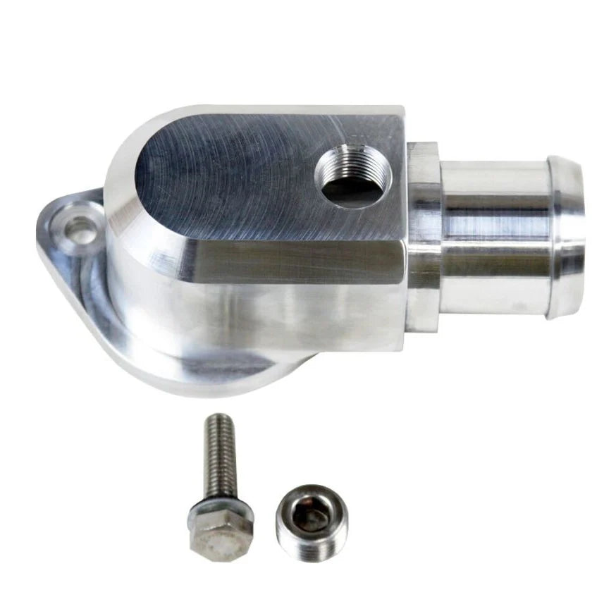 The thermostat housing is crafted from premium billet aluminum, chosen for its excellent thermal conductivity and strength-to-weight ratio. The CNC machining process ensures tight tolerances and a perfect fit, reducing the risk of leaks and improving durability compared to stock plastic housings. Its robust construction resists cracking and warping caused by heat cycling and pressure fluctuations common in high-performance engines.