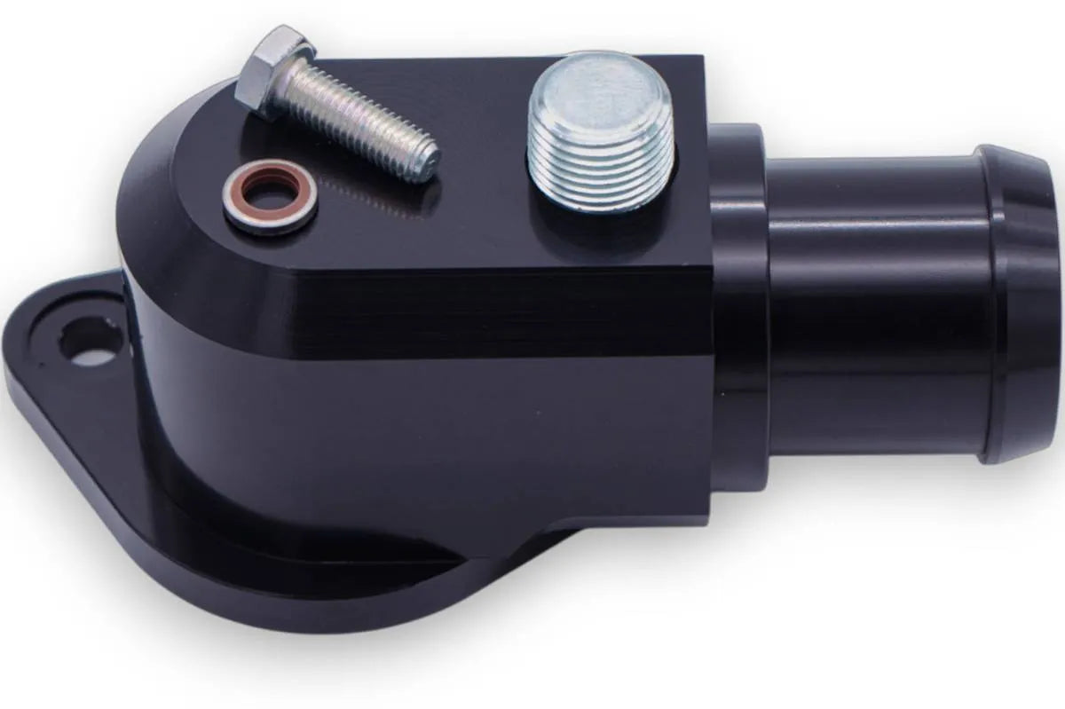Ideal for enthusiasts who push their vehicles hard on the street or track, this thermostat housing improves cooling system efficiency, helping maintain consistent engine temperatures critical for performance and engine longevity. Its sleek black anodized finish not only offers corrosion resistance but also adds a professional, OEM-style appearance to the engine bay.