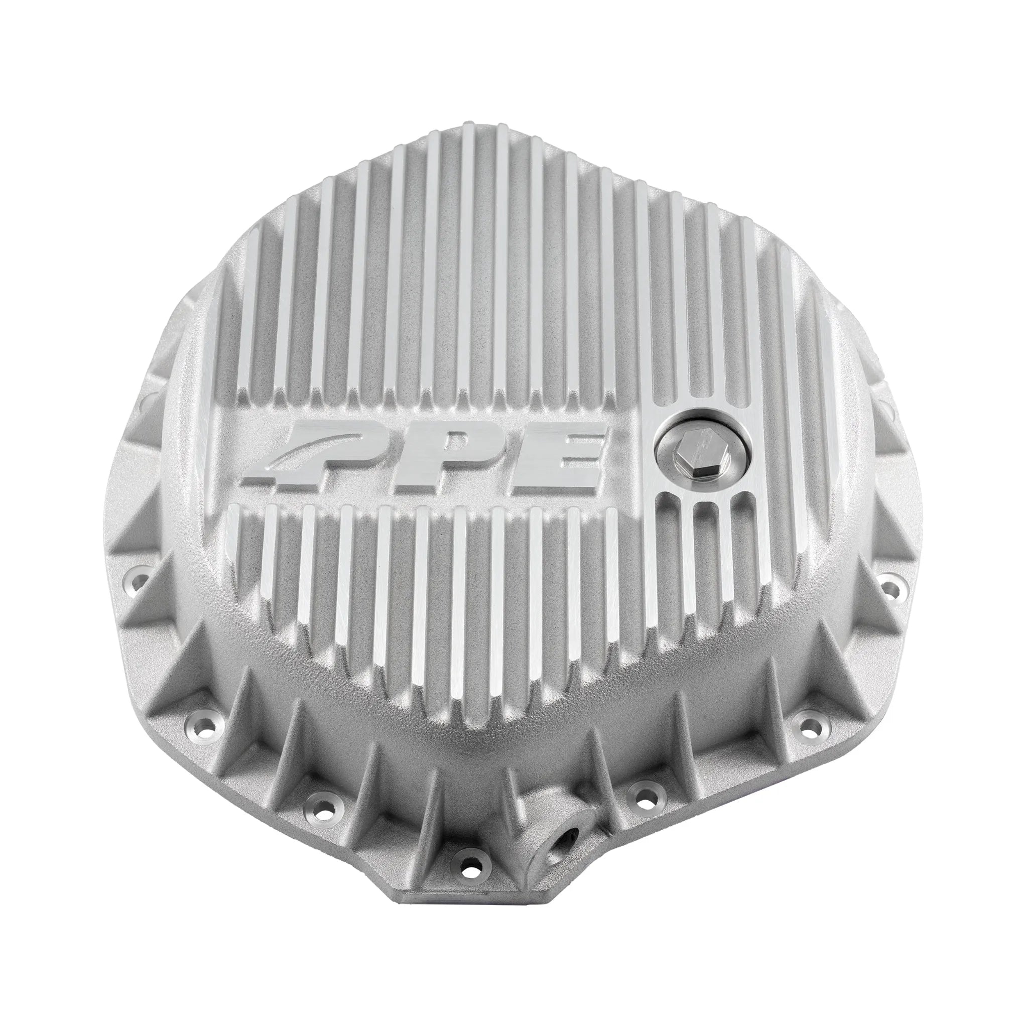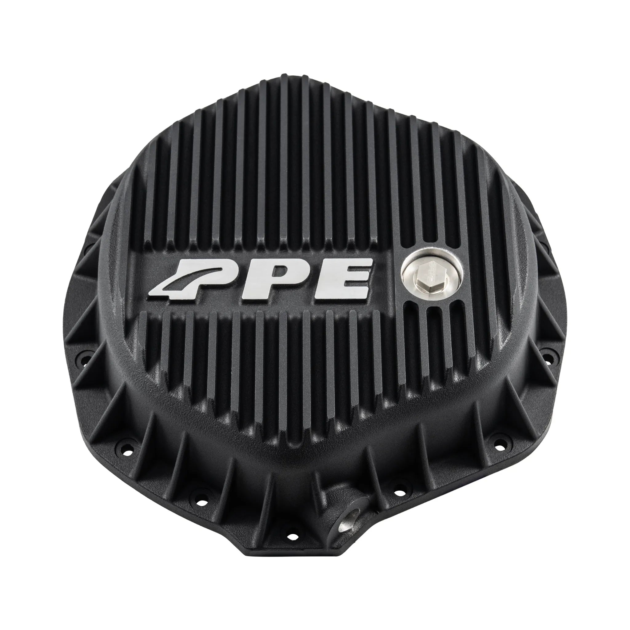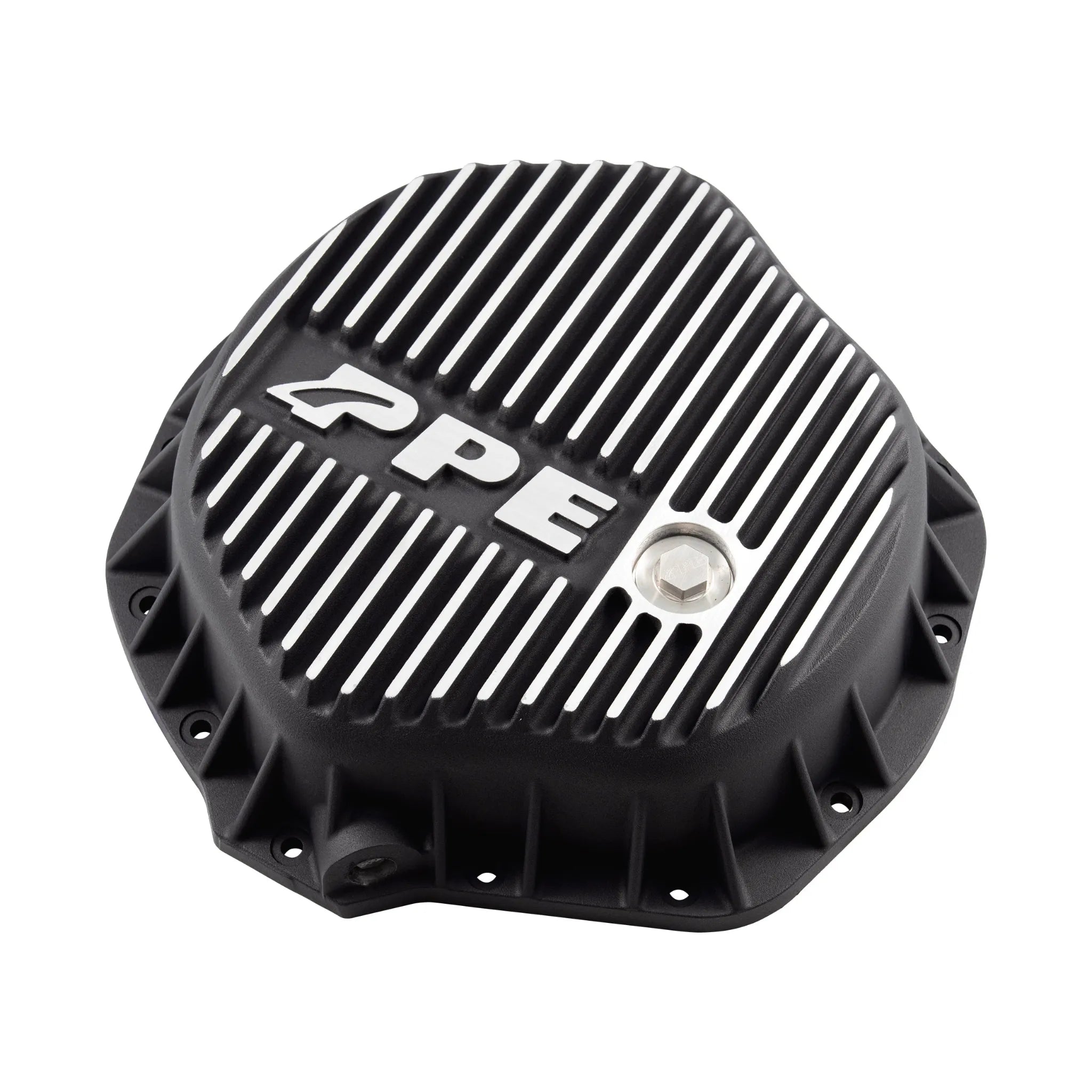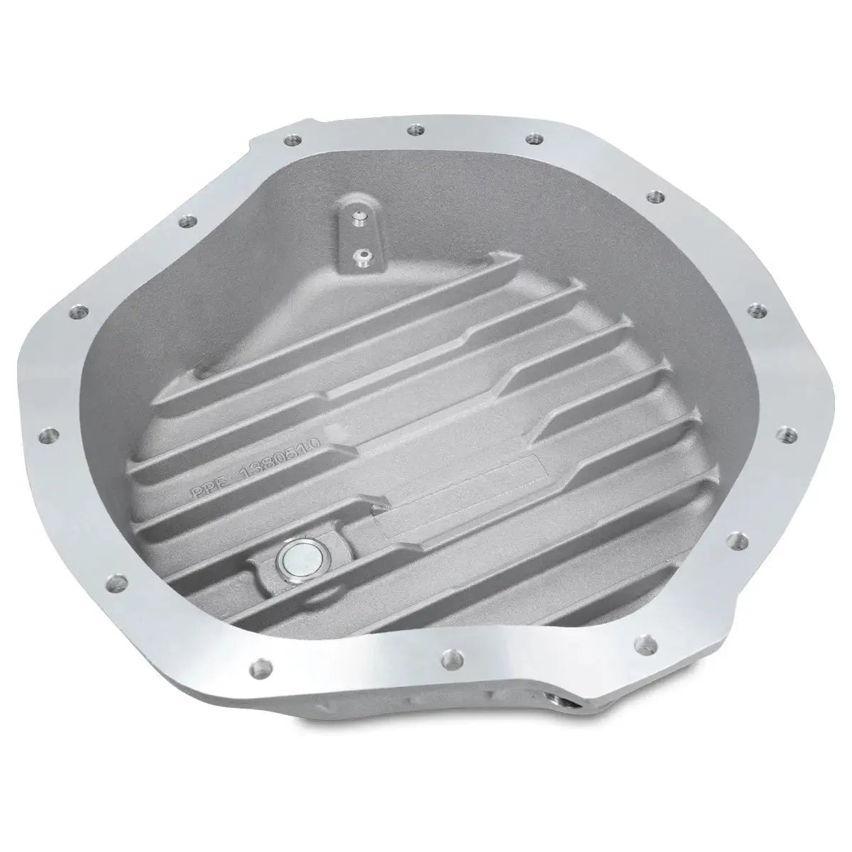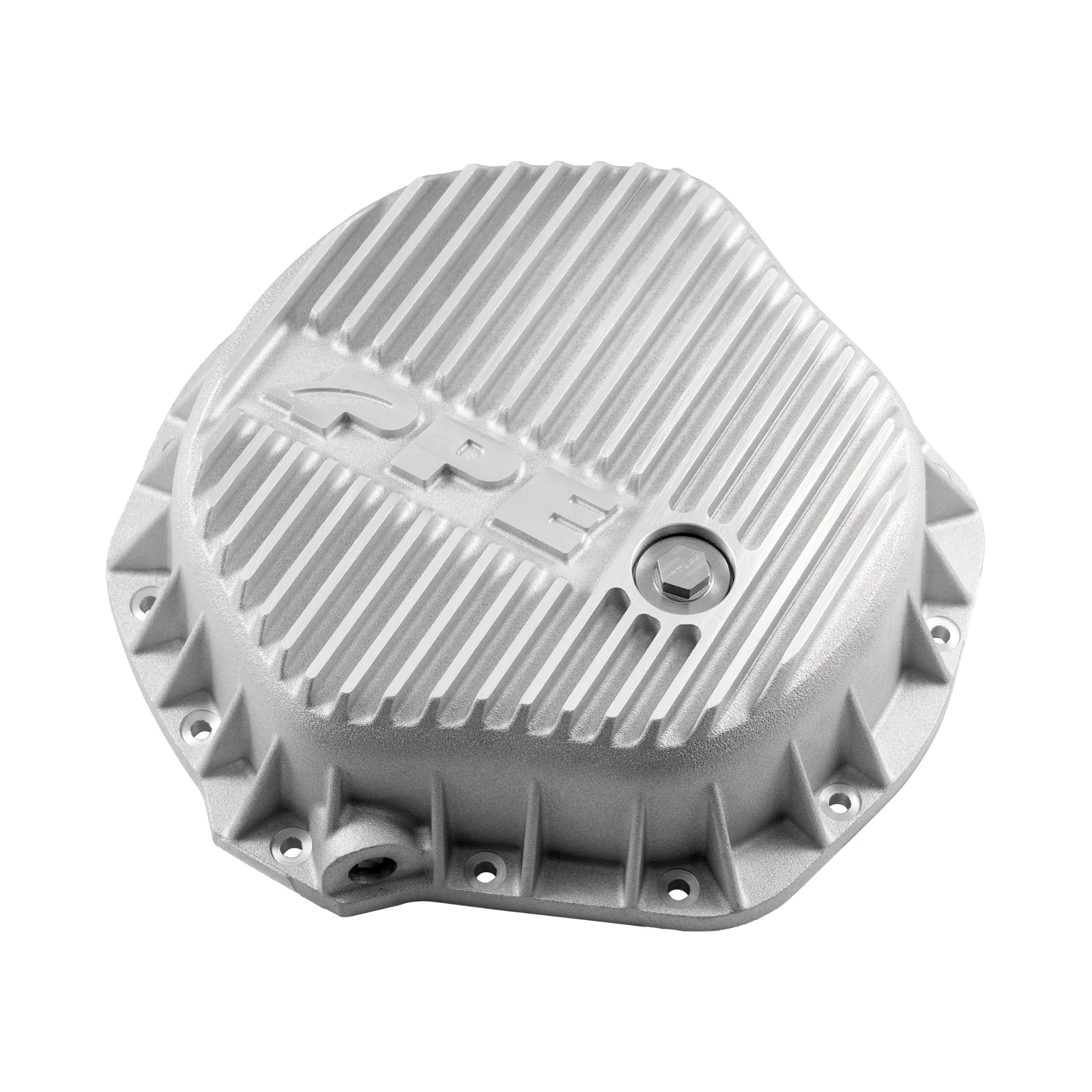 138051000 PPE GMC Sierra (01-19) / Chevrolet Silverado (01-19) / Dodge Ram (03-18) Rear Differential Cover. The PPE Rear Differential Cover is a heavy-duty aluminum upgrade designed for 2001-2019 GMC Sierra, 2001-2019 Chevrolet Silverado, and 2003-2018 Dodge Ram with AAM 11.5”-14 axles. It enhances heat dissipation with external cooling fins and increases fluid capacity by 0.75 quarts, protecting gears and clutch packs from excessive heat. Built-in windage scrapers optimize fluid distribution, reducing parasitic loss and improving power transfer for reliable performance under demanding conditions.