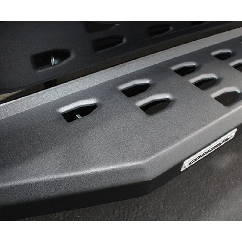 The RB20 Running Boards are engineered from high-quality steel to ensure strength and durability in demanding off-road conditions. The black textured powdercoat finish not only provides a rugged aesthetic but also offers excellent resistance to rust, scratches, and corrosion, extending the life of the running boards. The design incorporates wide, flat stepping surfaces with textured grip to prevent slipping in wet or muddy conditions. The bolt-on drop steps are strategically positioned to improve vehicle access without compromising ground clearance or off-road capability.