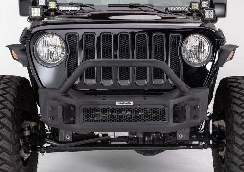 • Go Rhino Rockline Front Stubby Bumper assembly with hex mesh LED protective cover