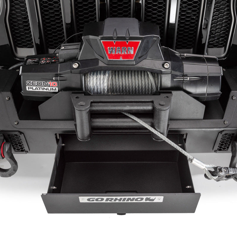 The Go Rhino Trailline Stubby Front Bumper is a rugged, winch-ready bumper designed specifically for Jeep Wrangler and Gladiator models from 2007 through 2026. This premium front bumper combines aggressive stubby-style end caps with patented Rhino hook shackles, providing enhanced off-road capability and a bold aesthetic. Ideal for Jeep enthusiasts who demand both functionality and style, the Trailline Stubby bumper offers superior protection, increased tire clearance, and convenient storage with its integrated gear drawer.