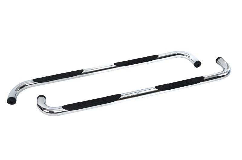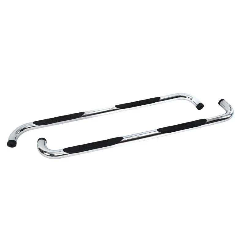 The 4000 Series side steps are crafted from heavy-duty steel tubing with a 3-inch diameter, providing robust strength and resistance to wear and tear. The smooth 90-degree bends at each end not only contribute to a refined aesthetic but also improve structural integrity. Each step is coated with a durable finish designed to withstand harsh environmental conditions, road debris, and corrosion.