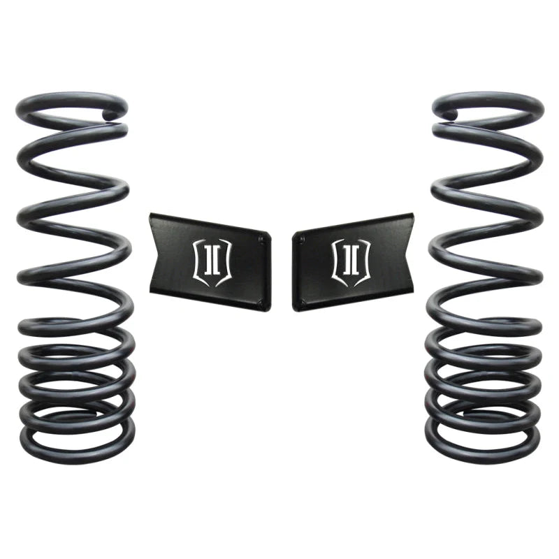 ICON’s dual rate springs are crafted from premium-grade steel, engineered to withstand the rigors of heavy-duty use and off-road abuse. The dual rate design features a progressive coil pattern that provides a softer initial spring rate for comfort and a firmer secondary rate for load support and stability. This approach reduces harshness over small bumps while preventing bottoming out under heavy loads or rough terrain.