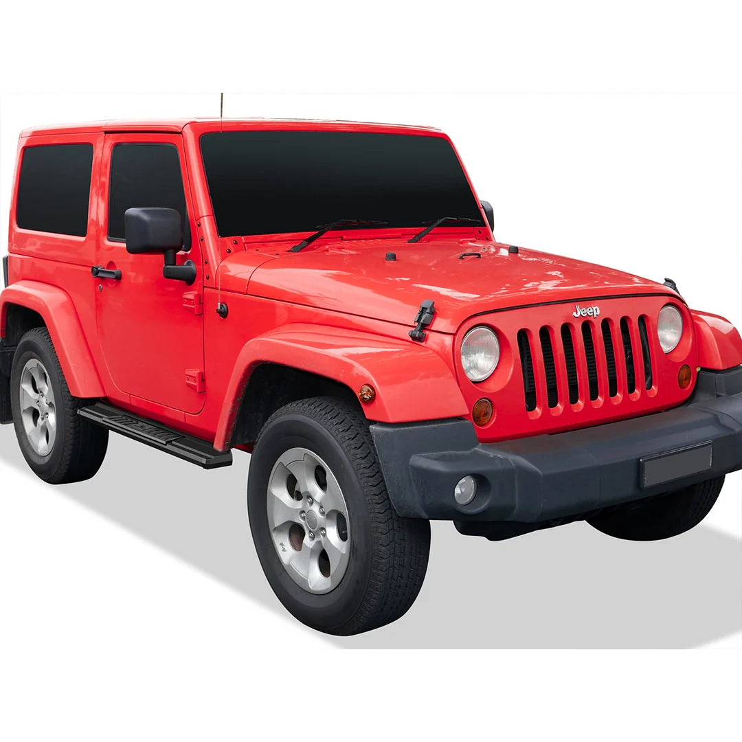 WB10SAJ6B APS 07-18 Jeep Wrangler JK 2-Door Running Boards (Black, Pair). The running board features heavy-duty steel construction; ensuring durability and reliability. Unique serrated pads help clean dirt, snow, and mud off your boots to keep truck cab clean.