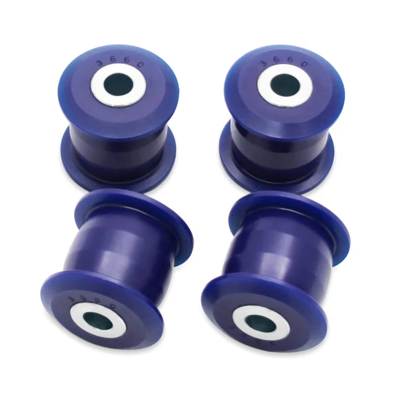 SuperPro bushings are crafted from a unique polyurethane formula that balances stiffness and compliance. This material choice provides superior wear resistance compared to traditional rubber, which tends to degrade and deform under stress. The bushings are precision-engineered to fit perfectly within the rear upper control arm assembly, ensuring consistent suspension geometry and alignment.