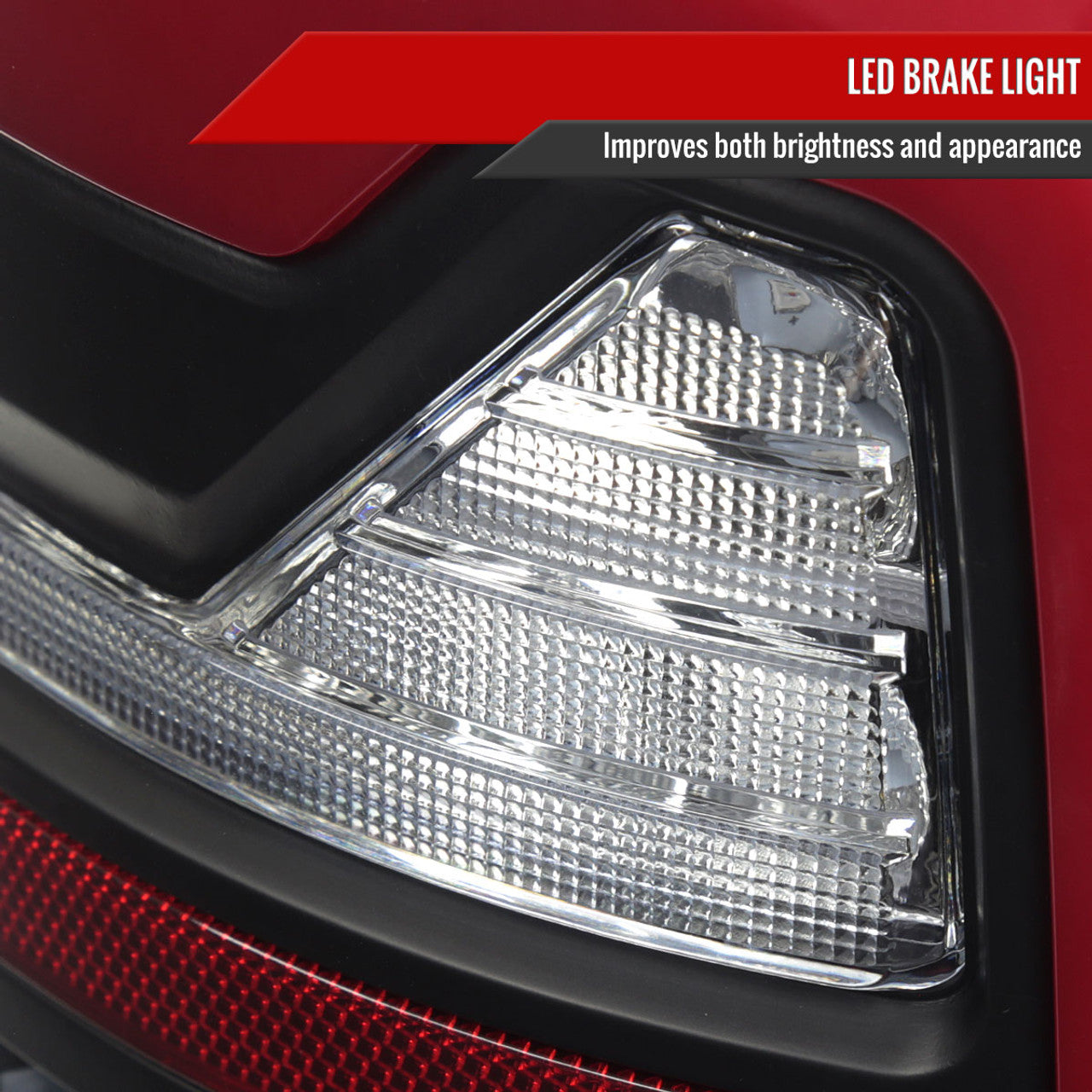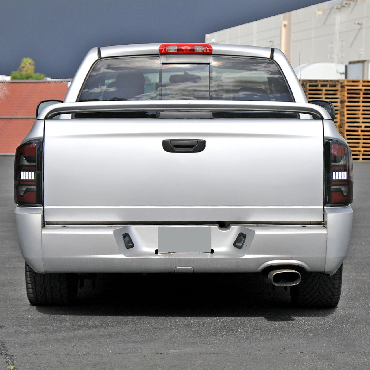 LT-RAM02JRLED-G2-RS Spec D 02-06 Dodge Ram LED Bar Tail Lights (Matte Black / Red LED). Comes with (1) set of LED turn signal tail lights in matte black housing with clear lens. Fiber optic, dynamic LED strip/bar & brake lights.