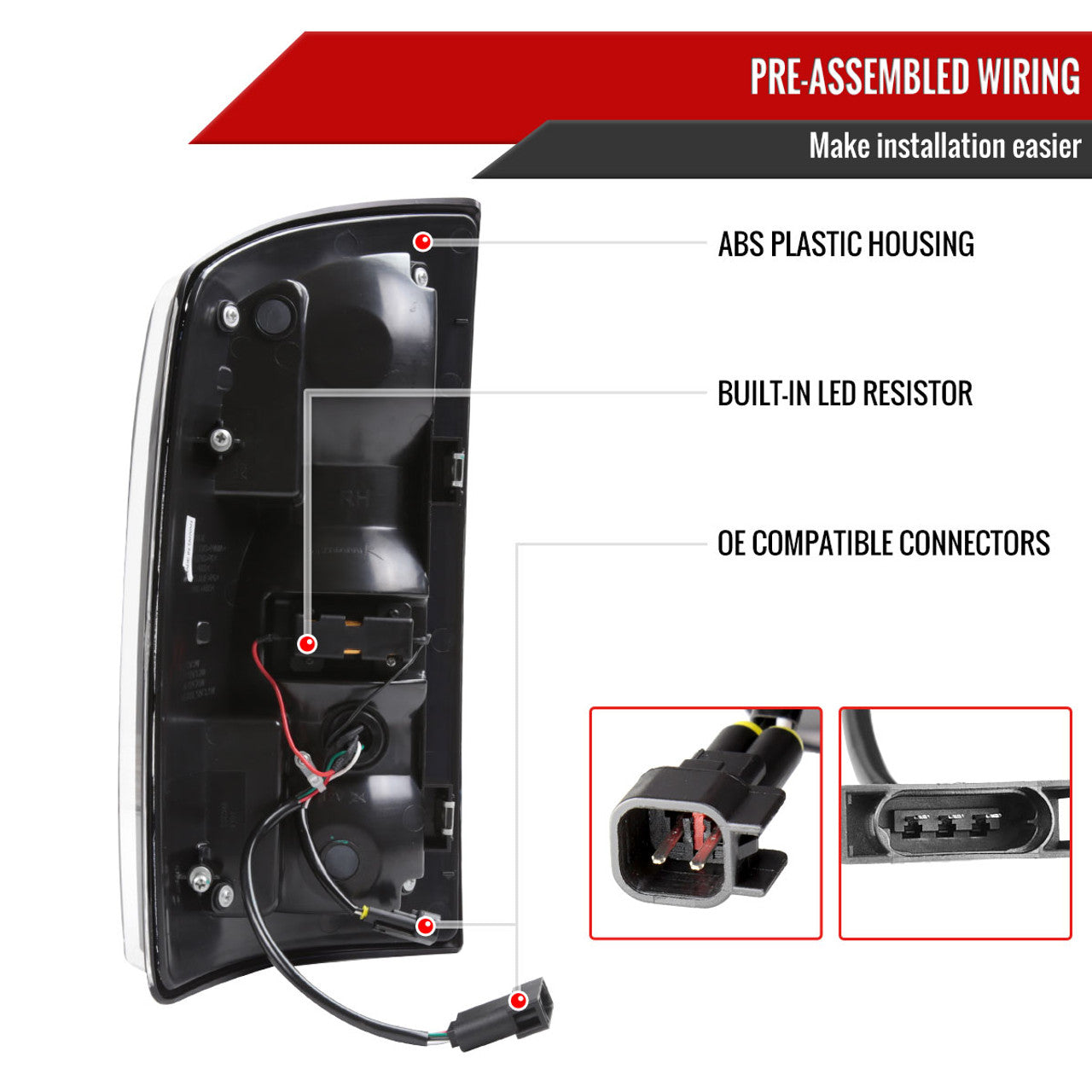 - Comes with (1) set of LED turn signal tail lights in matte black housing with clear lens