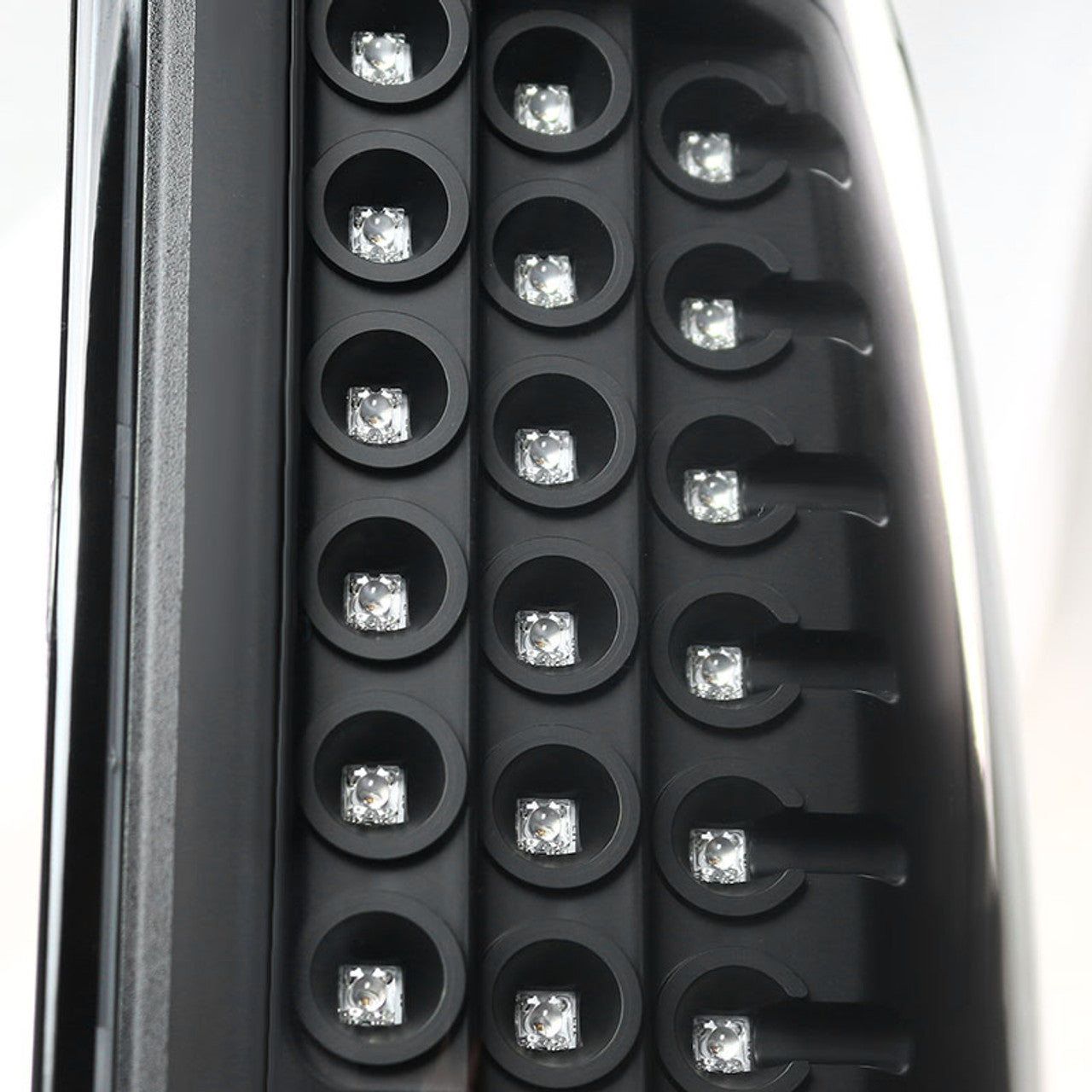 LT-RAM02JMLED-V2-TM Spec D 02-05 Dodge Ram LED Tail Lights (Black, Version 2). Comes with 1 pair of black housing clear lens LED tail lights. 1156 reverse light bulbs are included.