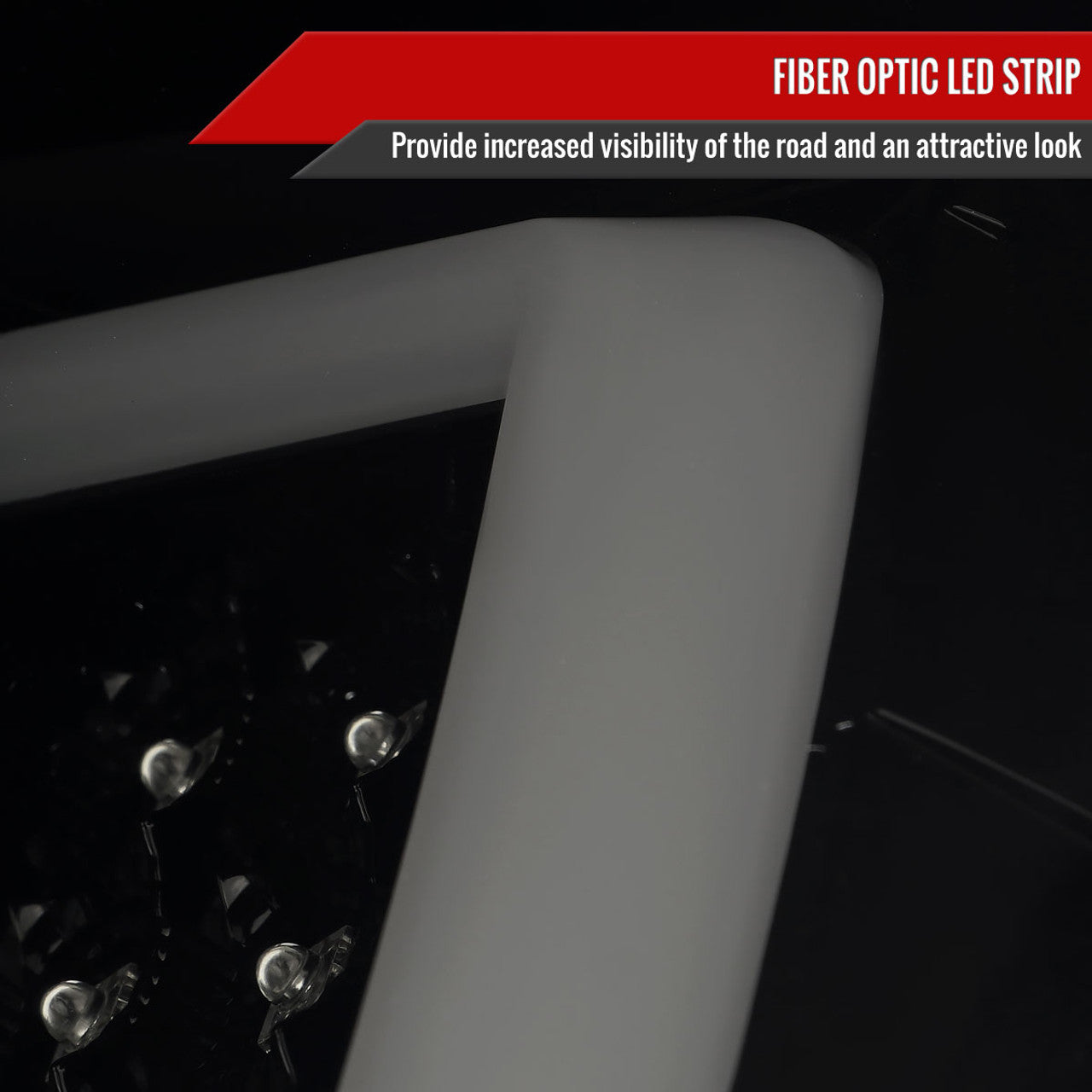 - Glossy black housing, smoke lens LED tail lights with white LED bar