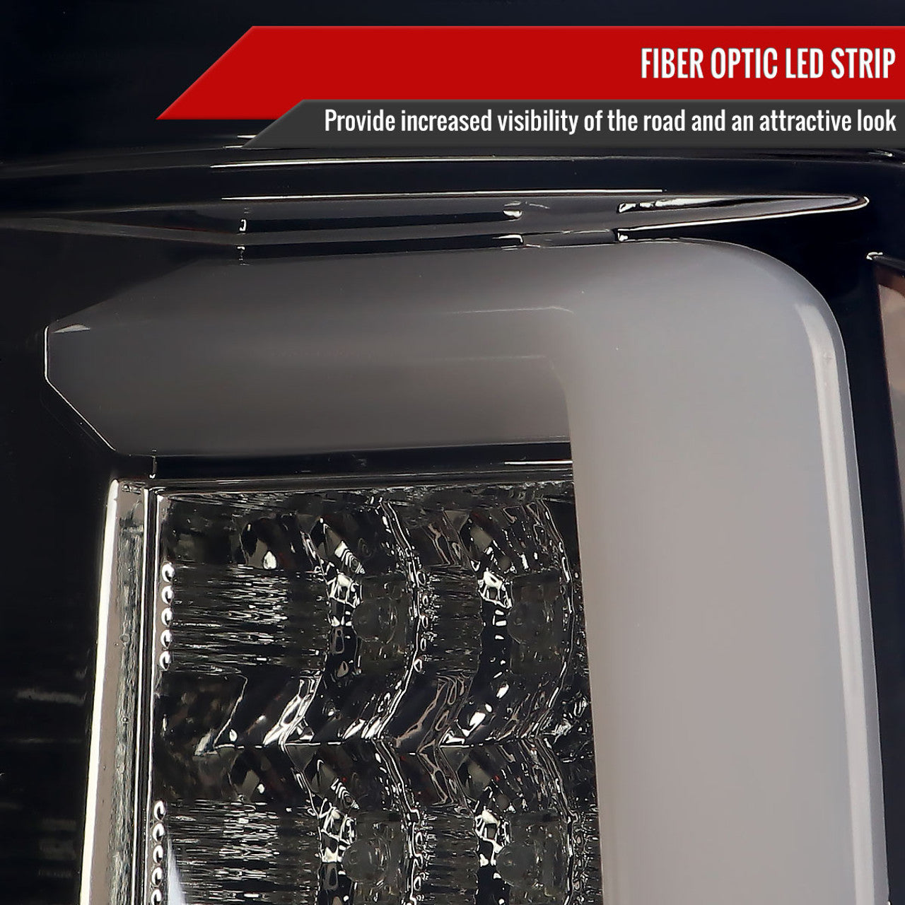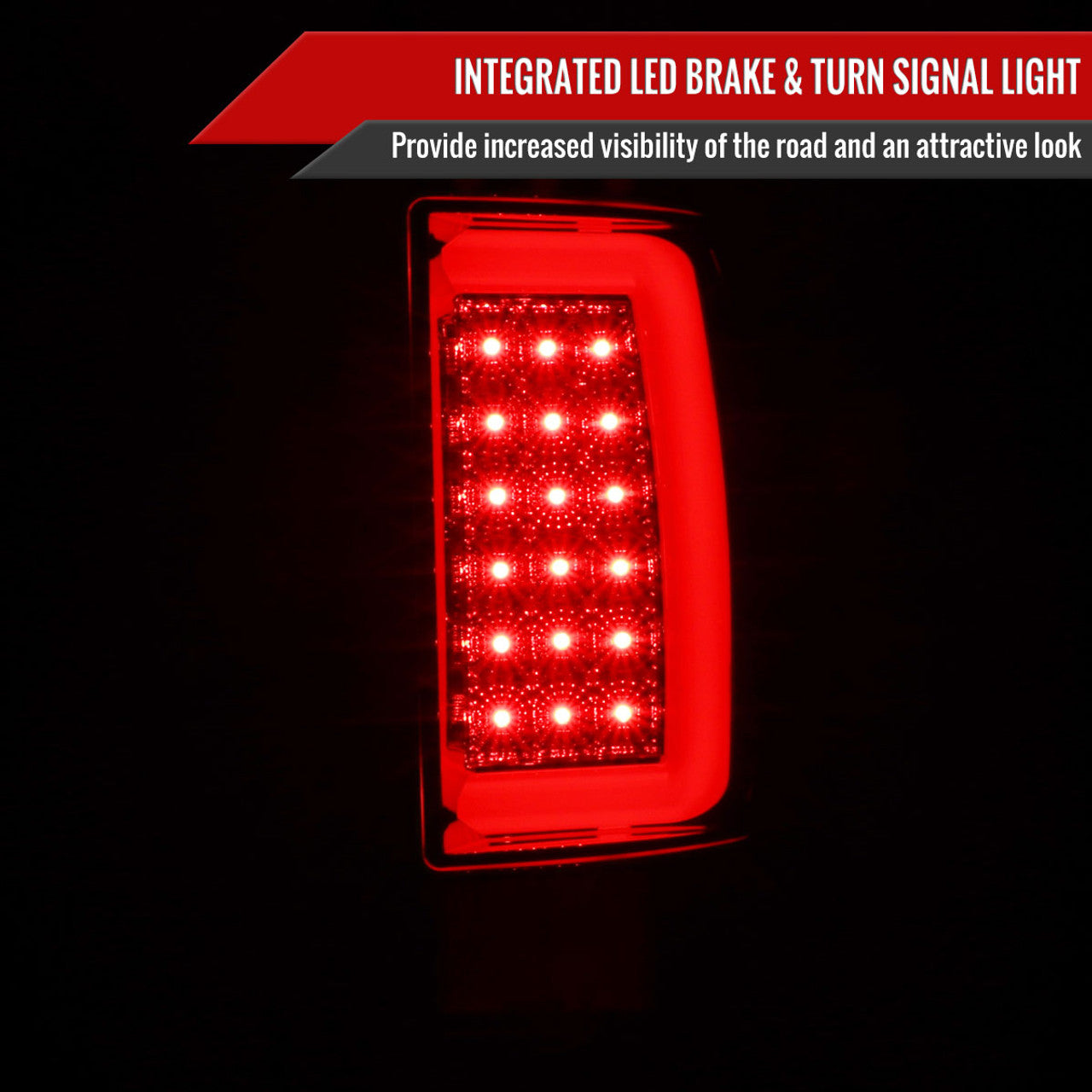 - Chrome housing, smoke lens LED tail lights with white LED bar