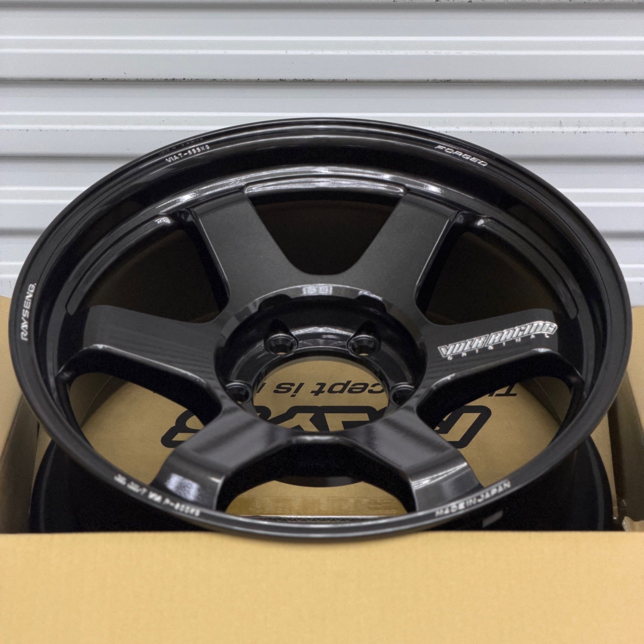 Authentic Volk Racing TE37 Ultra Large PCD M-Spec wheels in aggressive fitment for larger bolt pattern vehicles. Forged construction with clean six-spoke layout and purposeful concavity for balanced handling and visual depth.