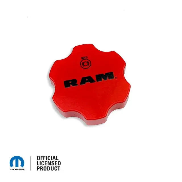 ABD-3587RC American Brother Designs 19-26 Ram 1500 Coolant Reservoir Cover. Custom built to order with a 30-45 day lead time, this coolant reservoir cover is crafted from premium 6061 billet aluminum for durability and style. Professionally machined, painted, and engraved with a sleek OEM-quality finish, it installs easily in minutes. Official Mopar licensed, it offers a perfect blend of function and aesthetics, enhancing your engine bay while protecting your coolant reservoir. Made in the USA, it features a UV clear coat for lasting protection and a color logo closely matched to factory hues.