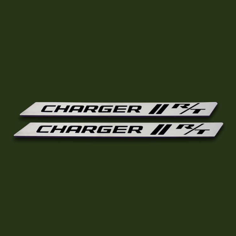 Dodge Charger Front Door Sills are meticulously crafted and MOPAR licensed. Your choice of logo and color combination. These doorsills are made from premium aluminum billet featuring a brushed finish and accented with durable OEM color-matched paint as rich and lustrous as the paint on your vehicle.