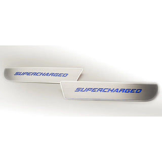 American Car Craft Front Brushed "SUPERCHARGED" Door Badge 2pc: Dodge Charger 2011 - 2023