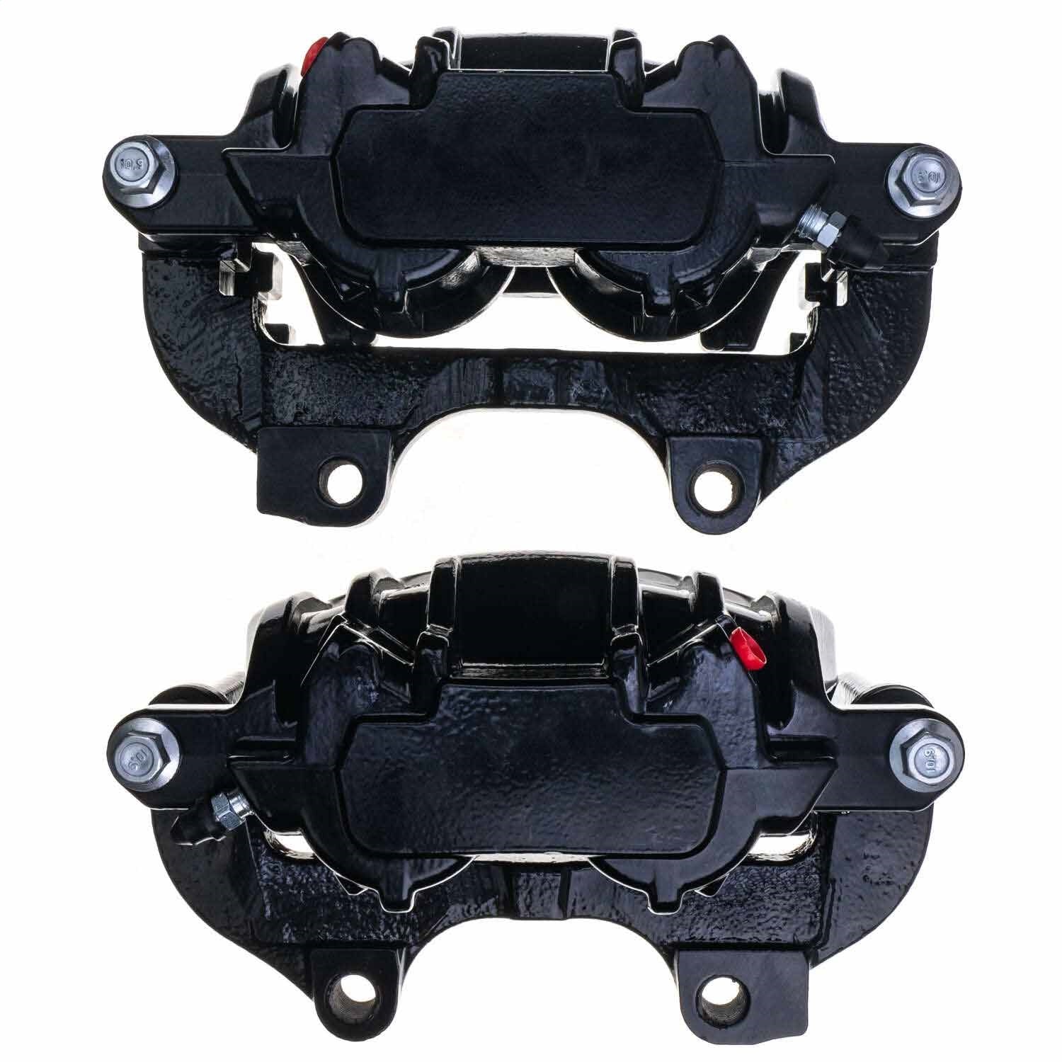 - Pair of front black powder coated aluminum calipers