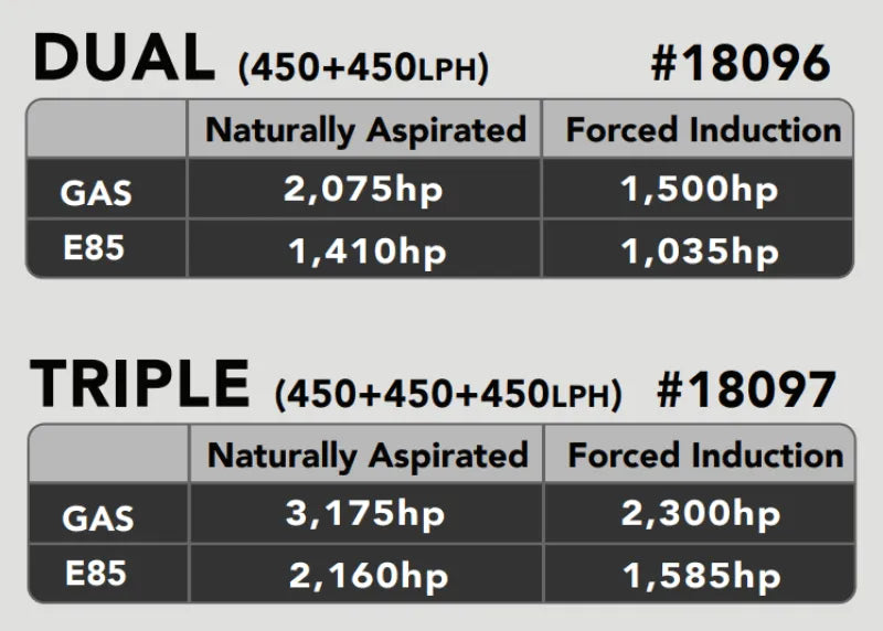 - Dual 450 LPH Phantom fuel pumps assembled in a direct drop-in module