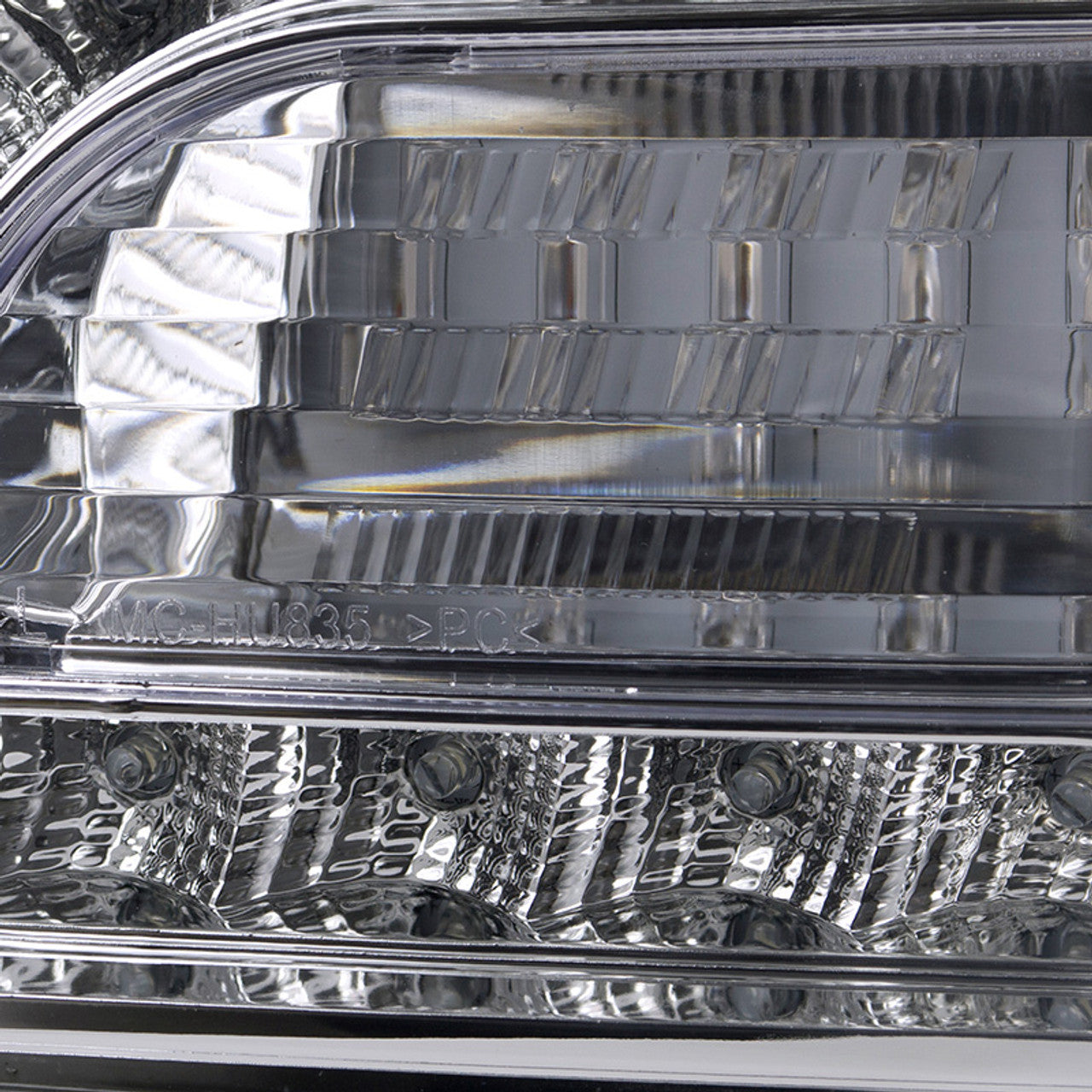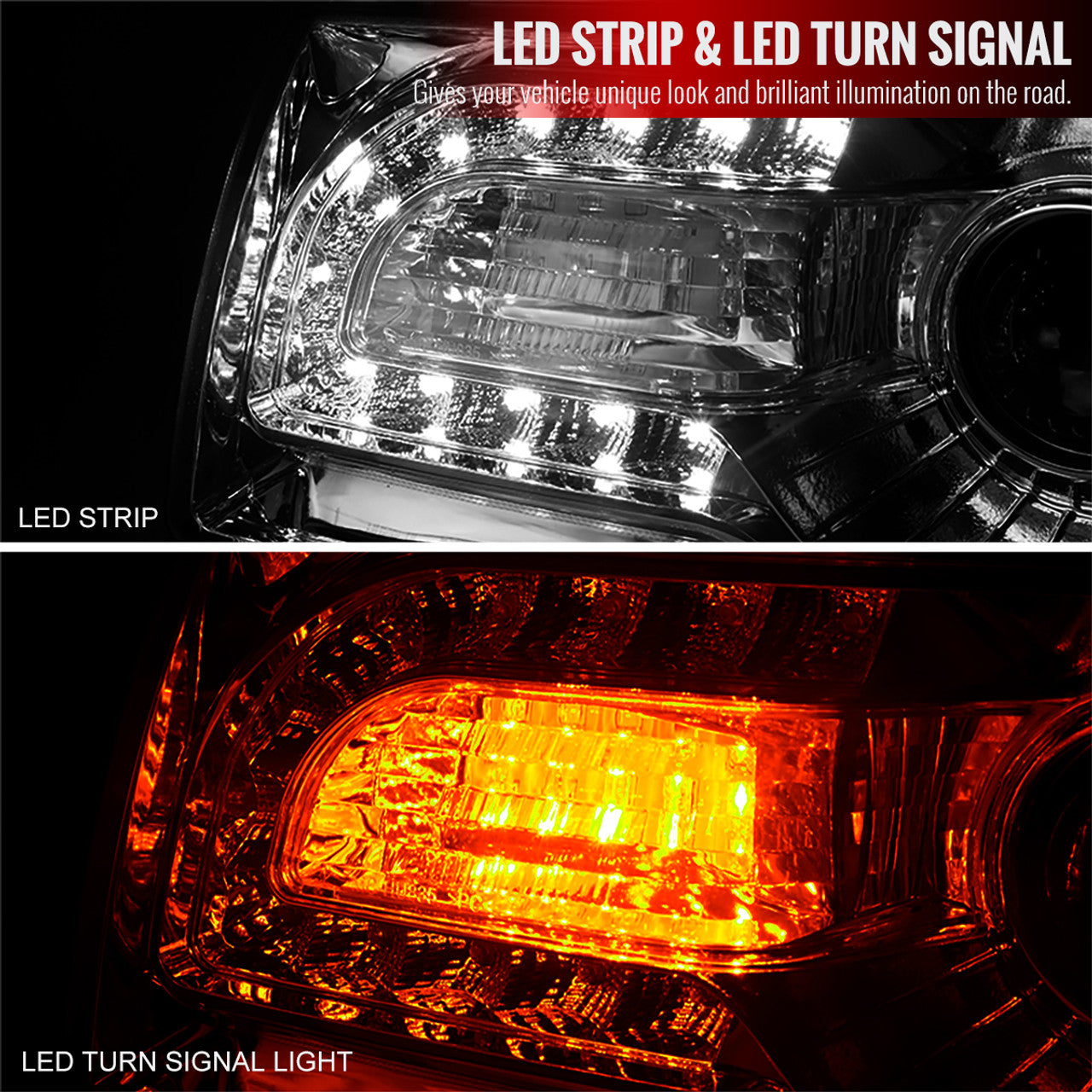 - Chrome housing, clear lens projector headlights with LED light strip & LED turn signal lights