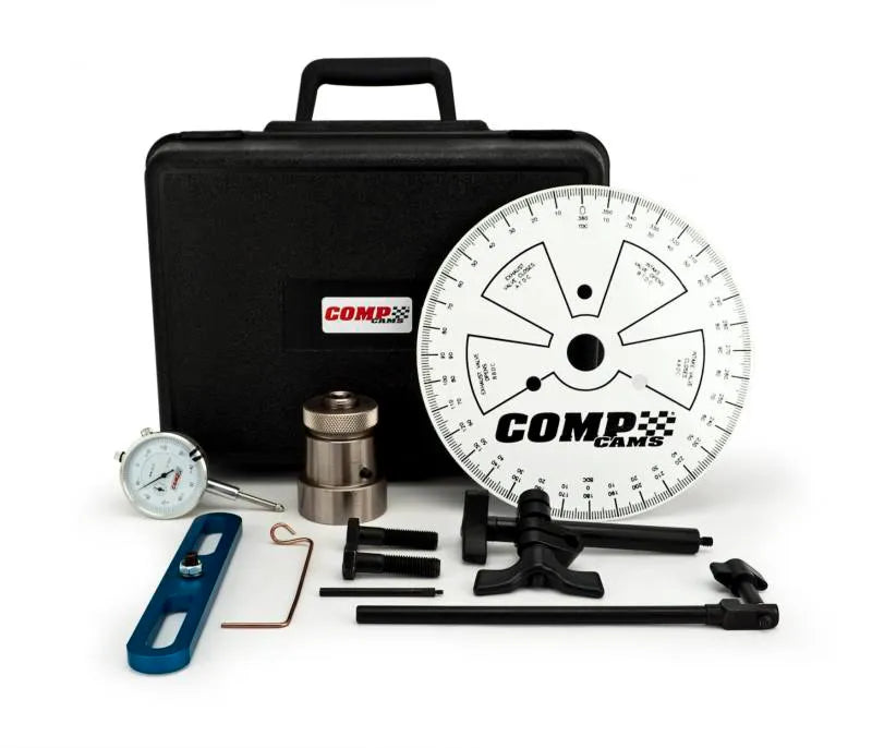The COMP Cams Camshaft Degree Kit is a precision-engineered toolset designed specifically for Chrysler 5.7L and 6.1L HEMI V8 engines. This kit enables accurate camshaft degreeing using a heads-off method, allowing users to set cam timing without removing the cylinder heads. Ideal for engine builders, professional mechanics, and performance enthusiasts, it ensures exact camshaft positioning to optimize engine power, throttle response, and overall efficiency.