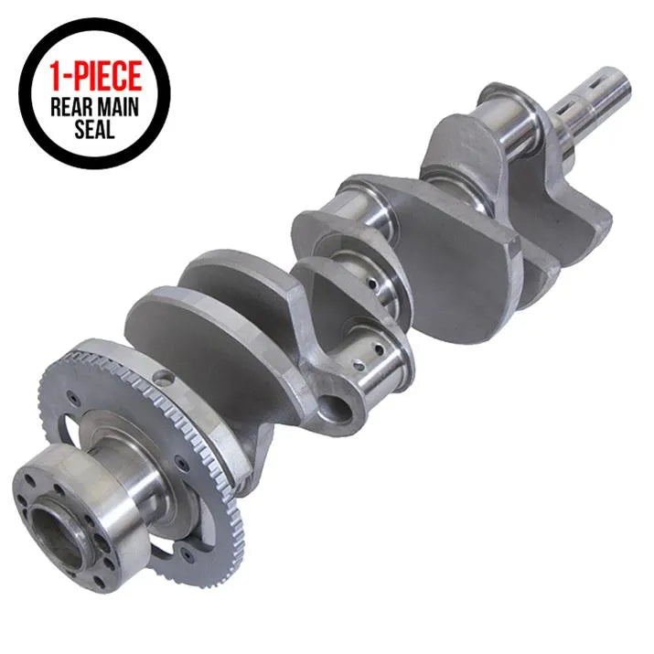 The crankshaft is precision forged from 4340 steel, a high-grade alloy known for its excellent tensile strength and toughness. This material choice ensures the crankshaft can withstand the extreme stresses generated by high-performance engines without compromising durability. The forging process enhances the internal grain structure, providing superior resistance to fatigue and wear compared to cast or billet alternatives.