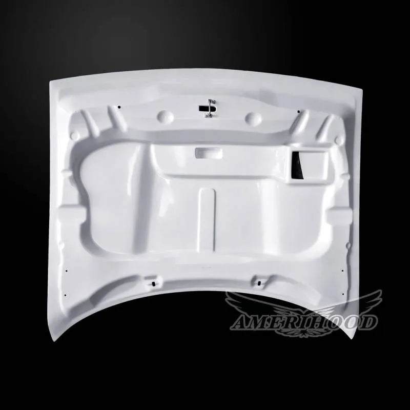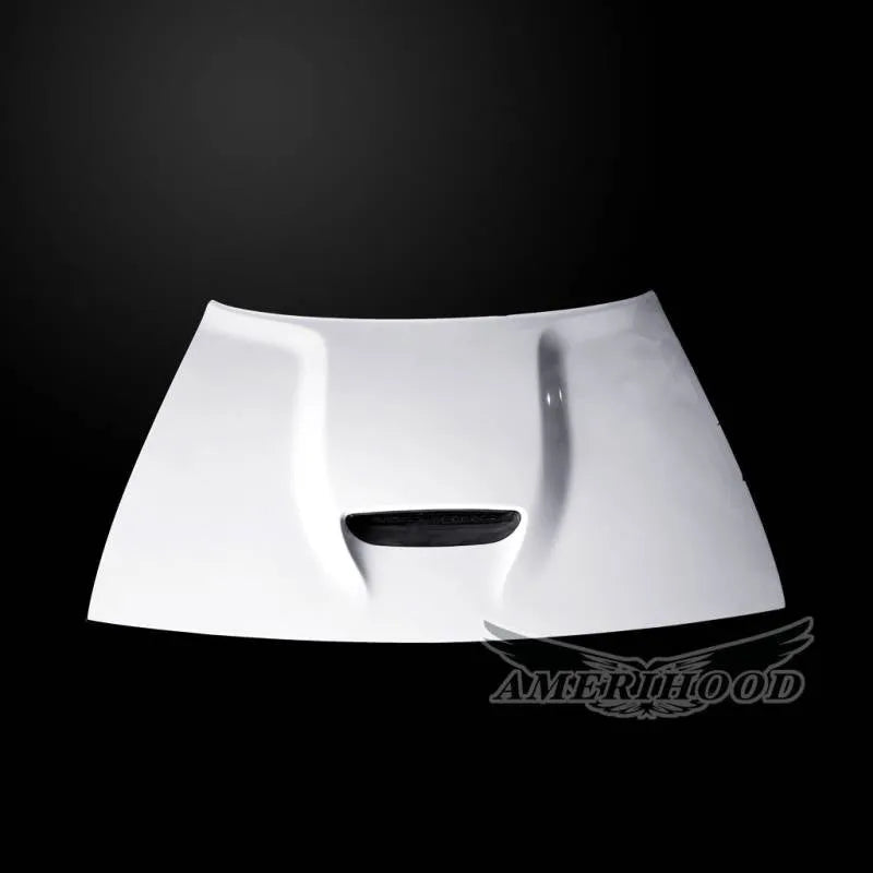 DCG08AHSRTFHW Amerihood 08-23 Dodge Challenger Functional Ram Air Hood. This high-quality fiberglass hood features a built-in functional ram air tunnel that directs cold intake air to enhance performance when paired with major air intake systems like Airaid and K&N. Designed for easy installation using factory hinges and latch, it includes a smooth gel coat finish on both sides for simplified prep and painting. Stock mesh grill inserts are included where applicable. Note: Requires hand-finishing for paint prep and fitment, offering a perfect blend of style and performance upgrade.