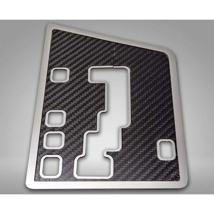 Our easy to install Carbon Fiber Shifter Plate Overlay sticks directly over your stock shifter plate.