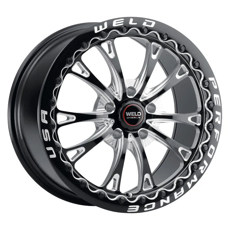 Weld S908 Belmont Drag / Gloss Black Milled | 17x11 | 5x115 | +6mm - Beadlock