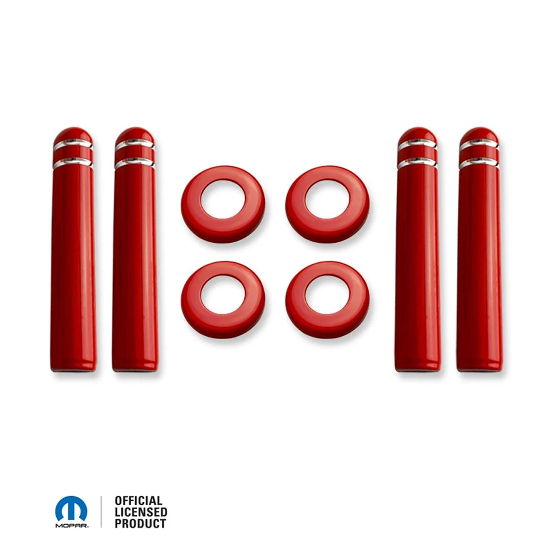 ABD-3144BP American Brother Designs 06-10 Dodge Charger Interior Kit Bezels and Pins. Custom built to order with a 30-45 day lead time, this 8-piece set includes 4 bezels and 4 pins crafted from premium 6061 billet aluminum. Professionally machined and painted with a durable, lustrous finish, these parts perfectly complement your vehicle's interior. Made in the USA and officially Mopar licensed, they offer both style and quality for Dodge Charger enthusiasts seeking a refined upgrade.