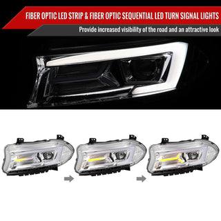 Spec D Sequential LED Projector Headlights (Chrome): Dodge Charger 2015 - 2023