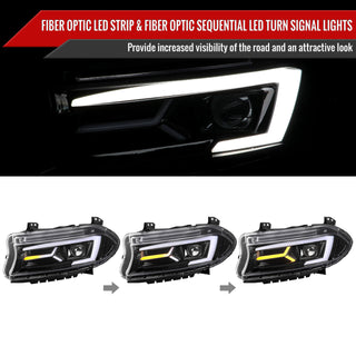 Spec D Sequential LED Projector Headlights (Black): Dodge Charger 2015 - 2023