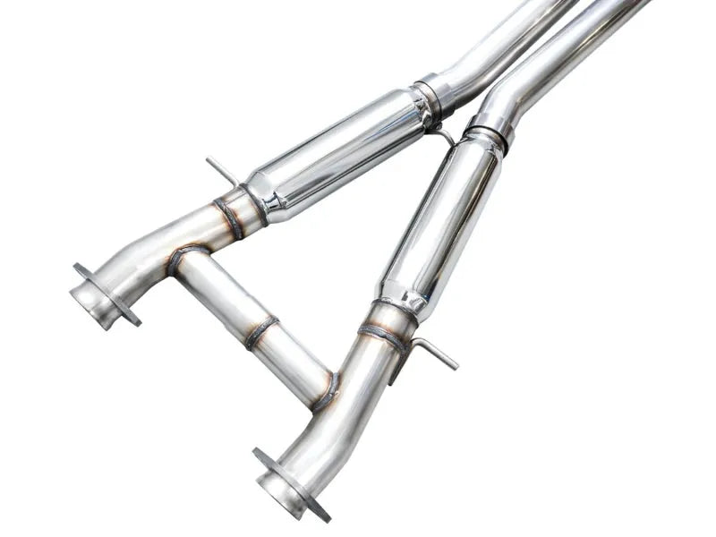 - 3-inch mandrel-bent catback exhaust piping with integrated H-pipe