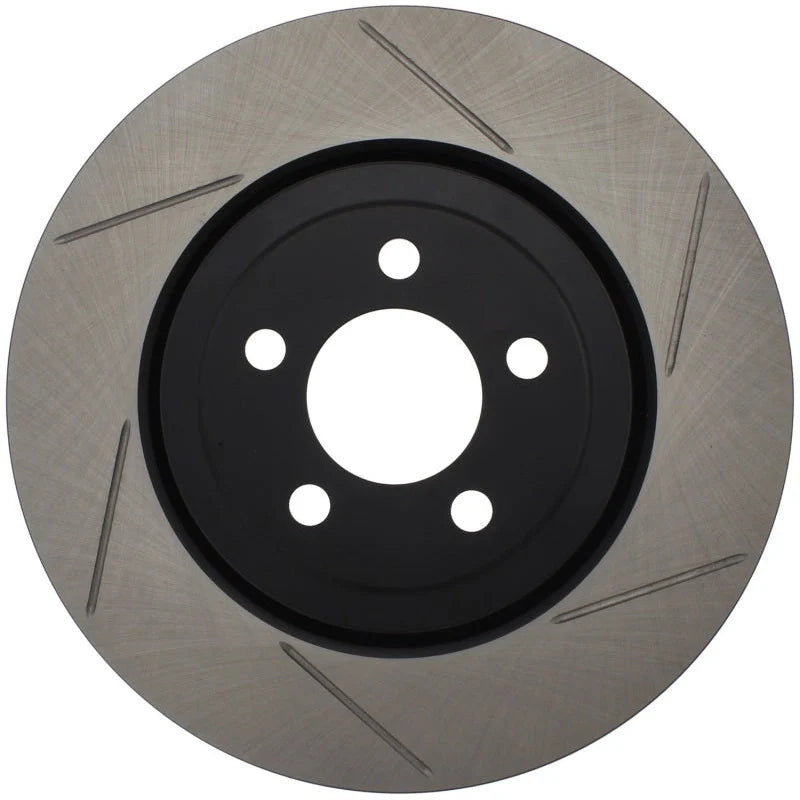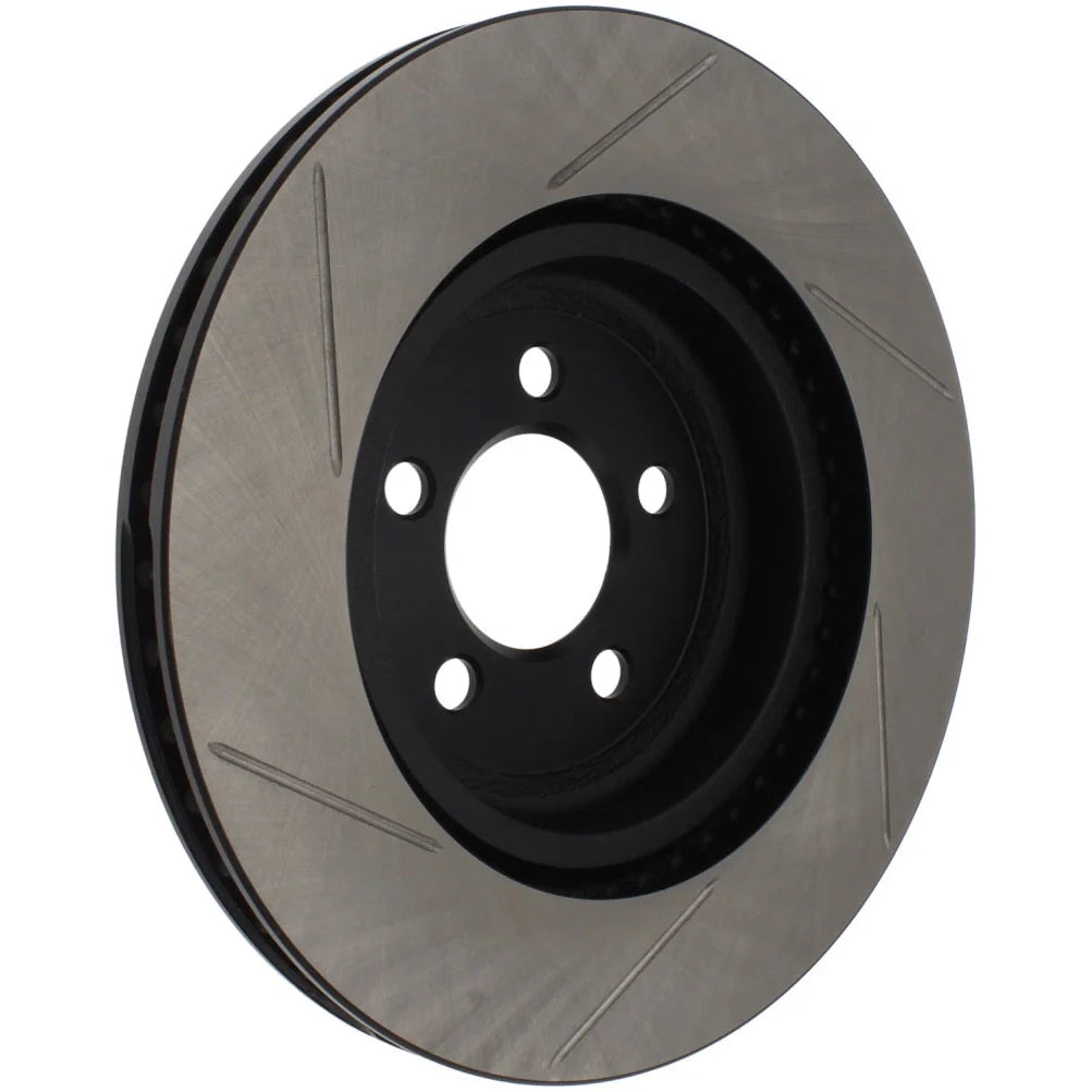 Stoptech Slotted Front Brake Rotors enhance braking performance and cooling for 2005-2024 Chrysler 300C, Dodge Challenger, Charger, and Magnum 5.7L Hemi models. Designed to improve pad bite and clear debris, these rotors feature a durable black e-coating that resists rust and ensures long-lasting reliability. Their advanced cooling vane design supports consistent performance under demanding conditions, making them an ideal upgrade for enthusiasts seeking improved stopping power and durability.