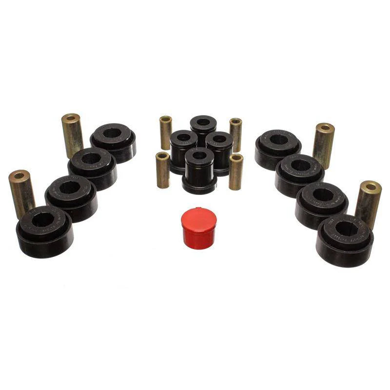 5.3140 Energy Suspension 05-10 300 / Challenger / Charger / Magnum Front Control Arm Bushings. Upgrade front suspension performance with Energy Suspension Front Control Arm Bushings for your vehicle. Made from durable Hyper-Flex™ polyurethane in red or black, these bushings reduce deflection, maintain alignment, and improve handling. Includes compression and strut rod bushings, delivering long-lasting control, smoother operation, and superior road feel.